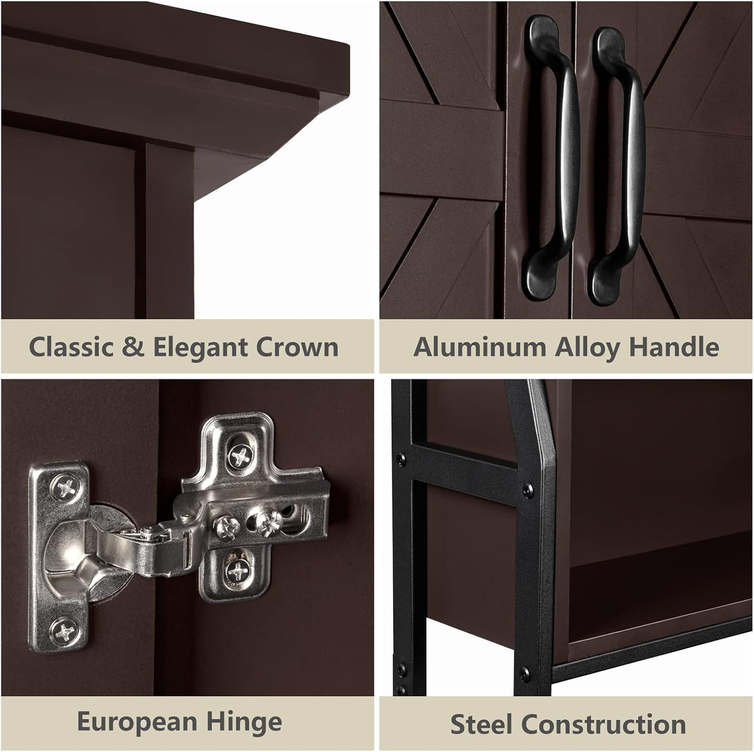 - PREMIUM MATERIAL - Exquisite metal handle and high quality hinges makes the door easy to close, using the two enclosed barn doors cabinet to store and protect your personal belongings from dust. The adjustable interior shelf allows you to customize storage as needed, while the 4 adjustable levelers keep the cabinet stable and protect the ground from scratches.