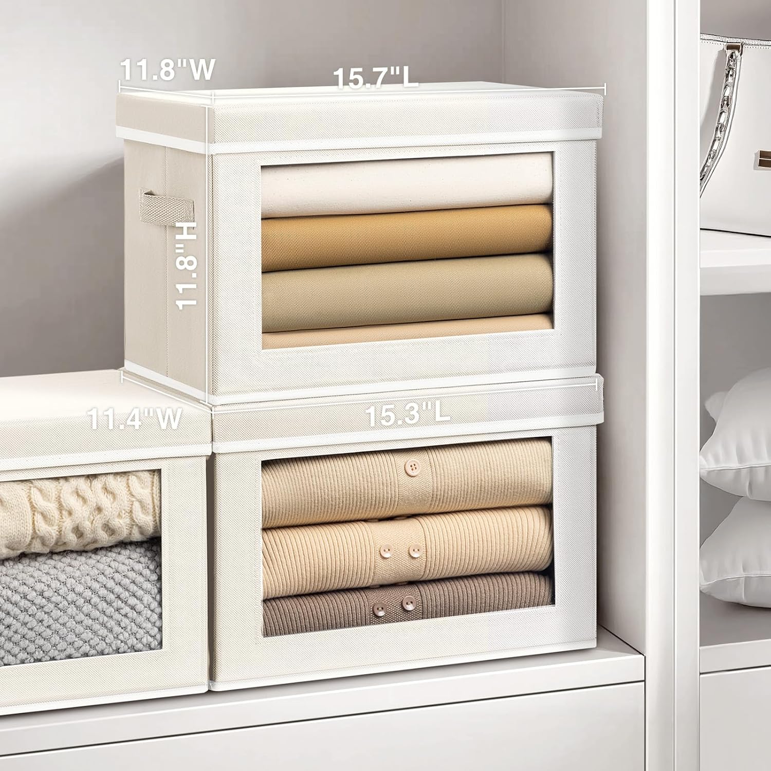 Storage Bins with Lids, 4 Pack Large Storage Cubes with Window, Closet Bins with Lids & Handles, Fabric Box for Organizing Clothes, Towels, Books, Beige