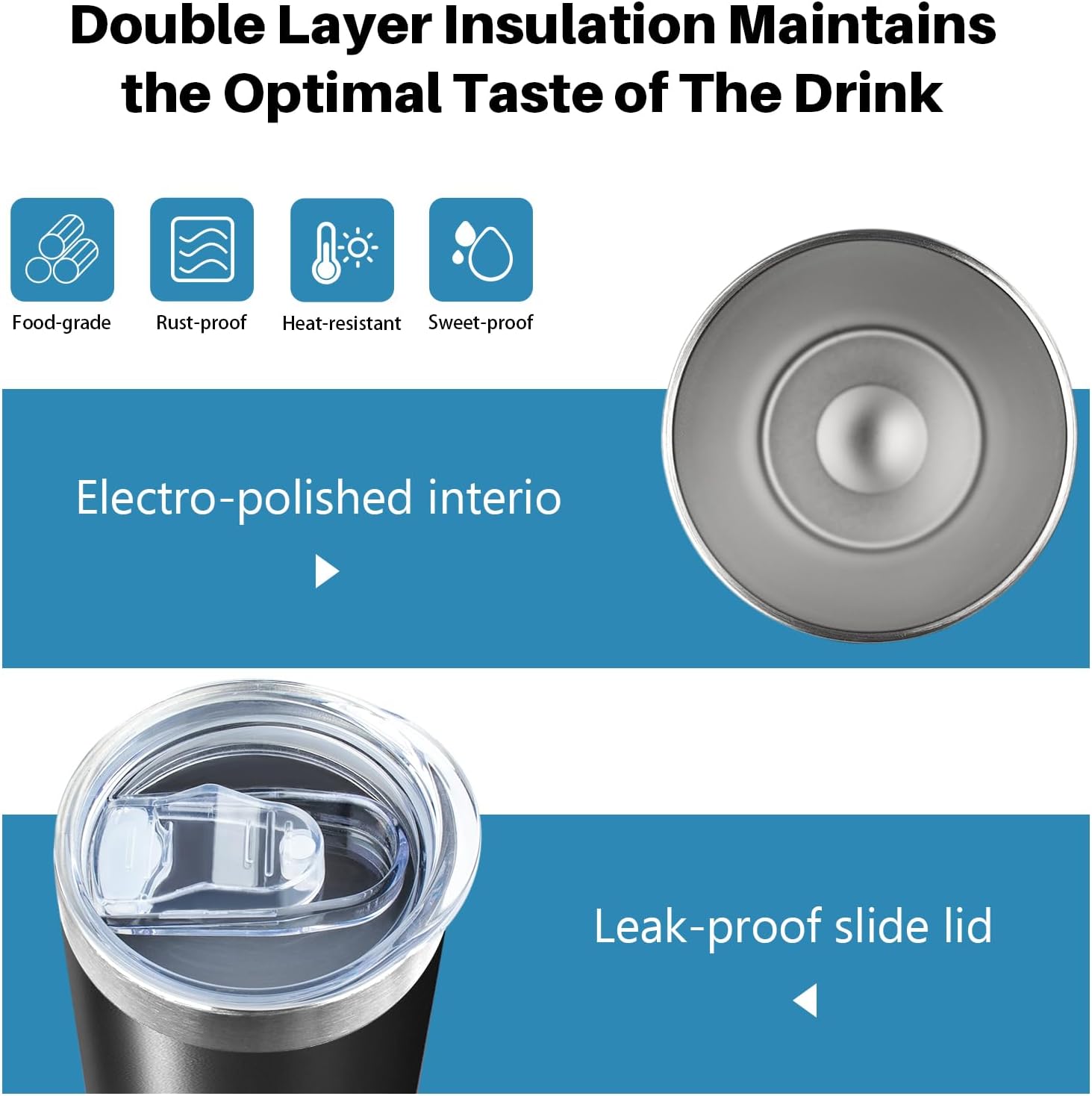 - 【Double Wall Vacuum Insulation】 Stainless steel tumblers adopts the technology of double walled vacuum insulation design keeps beverages hot up to 6 hours and cold up to 12 hours and prevent sweating or condensation.Keep cool outside! This insulated tumbler with straw provides a more enjoyable drinking experience.