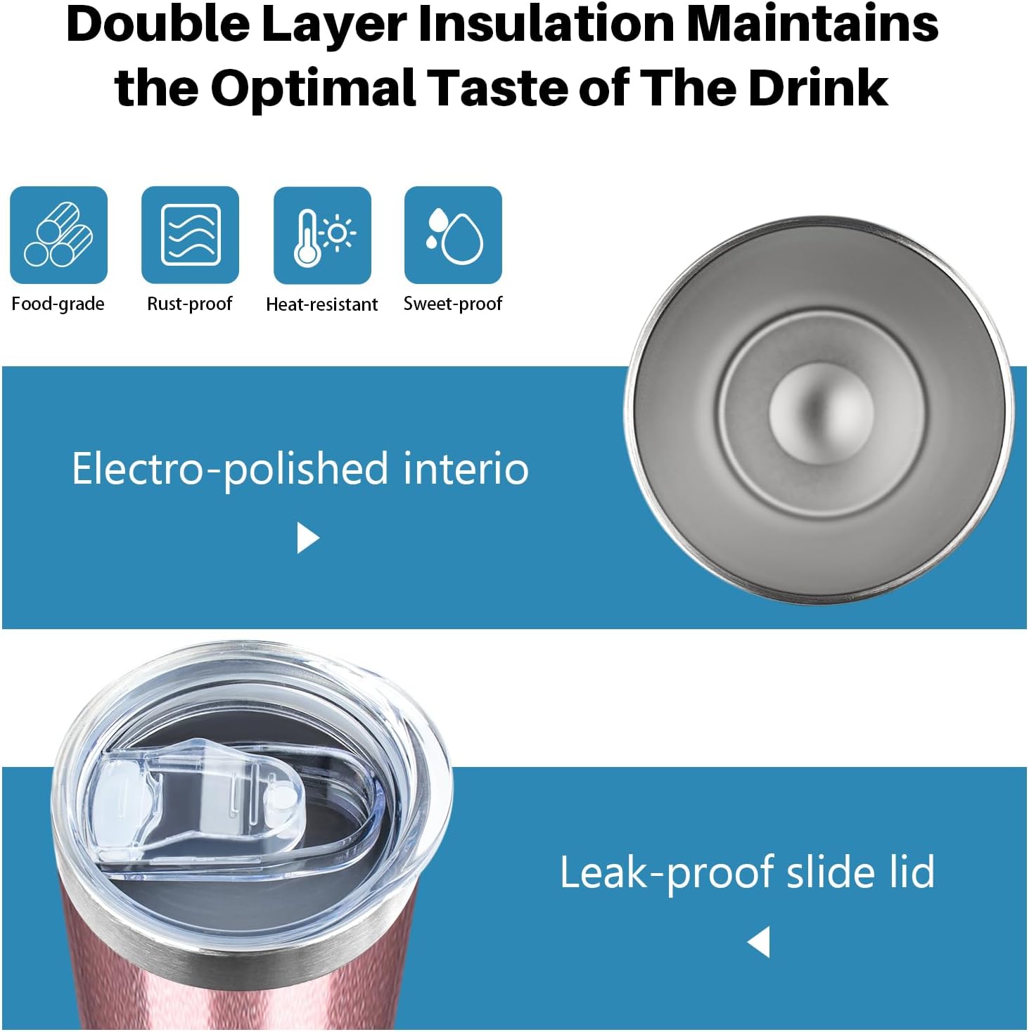 - 【Double Wall Vacuum Insulation】 Stainless steel tumblers adopts the technology of double walled vacuum insulation design keeps beverages hot up to 6 hours and cold up to 12 hours and prevent sweating or condensation.Keep cool outside! This insulated tumbler with straw provides a more enjoyable drinking experience.