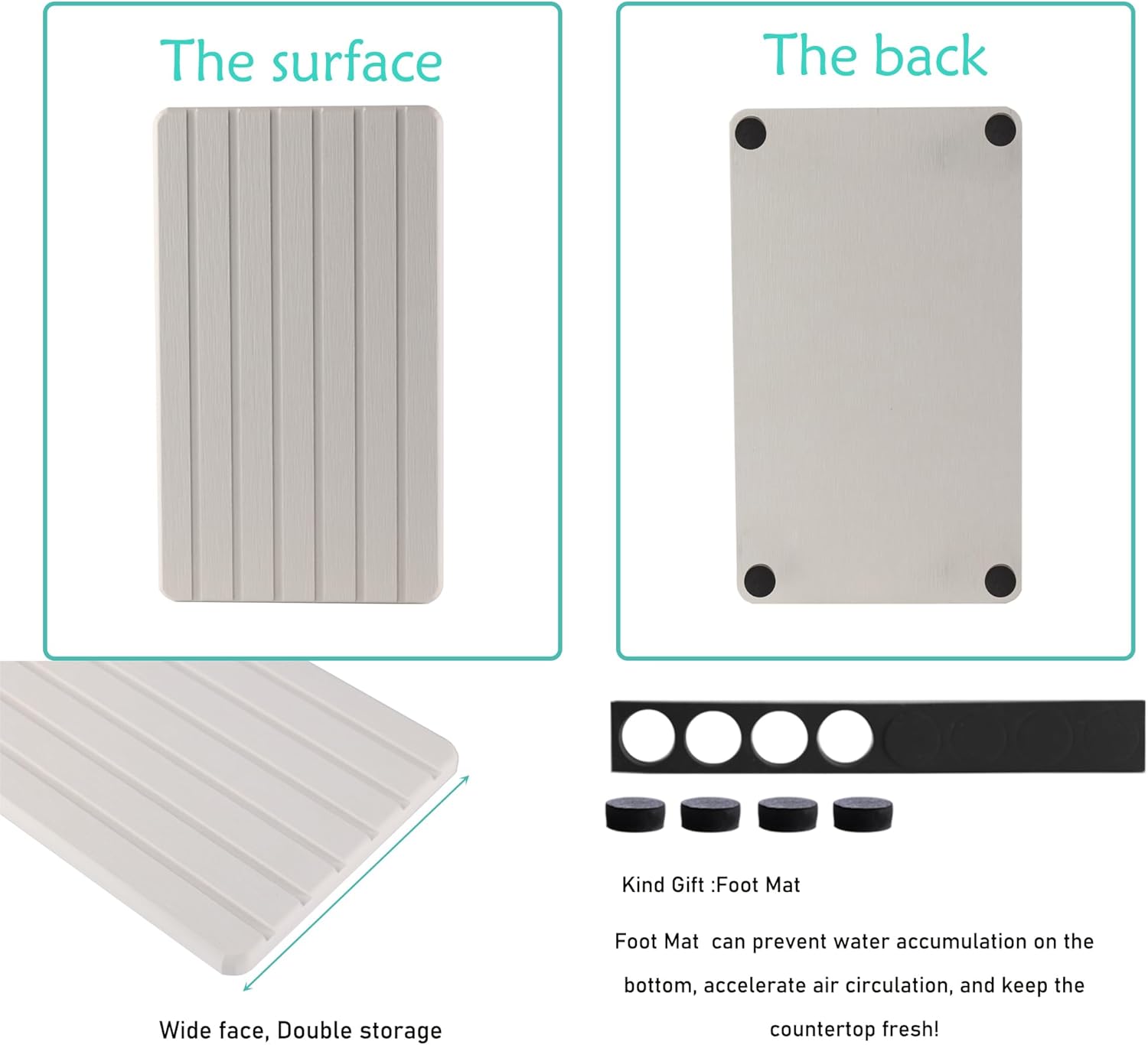 - Suitable to be used as absorbent mats for soaps / cups / soap bottle / dish sponge / make-up bottles, and anywhere you need to absorb water quickly and keep the table / countertop surface dry. Perfect Design Created for the Modern Home, to make life clean, comfortable and orderly.
