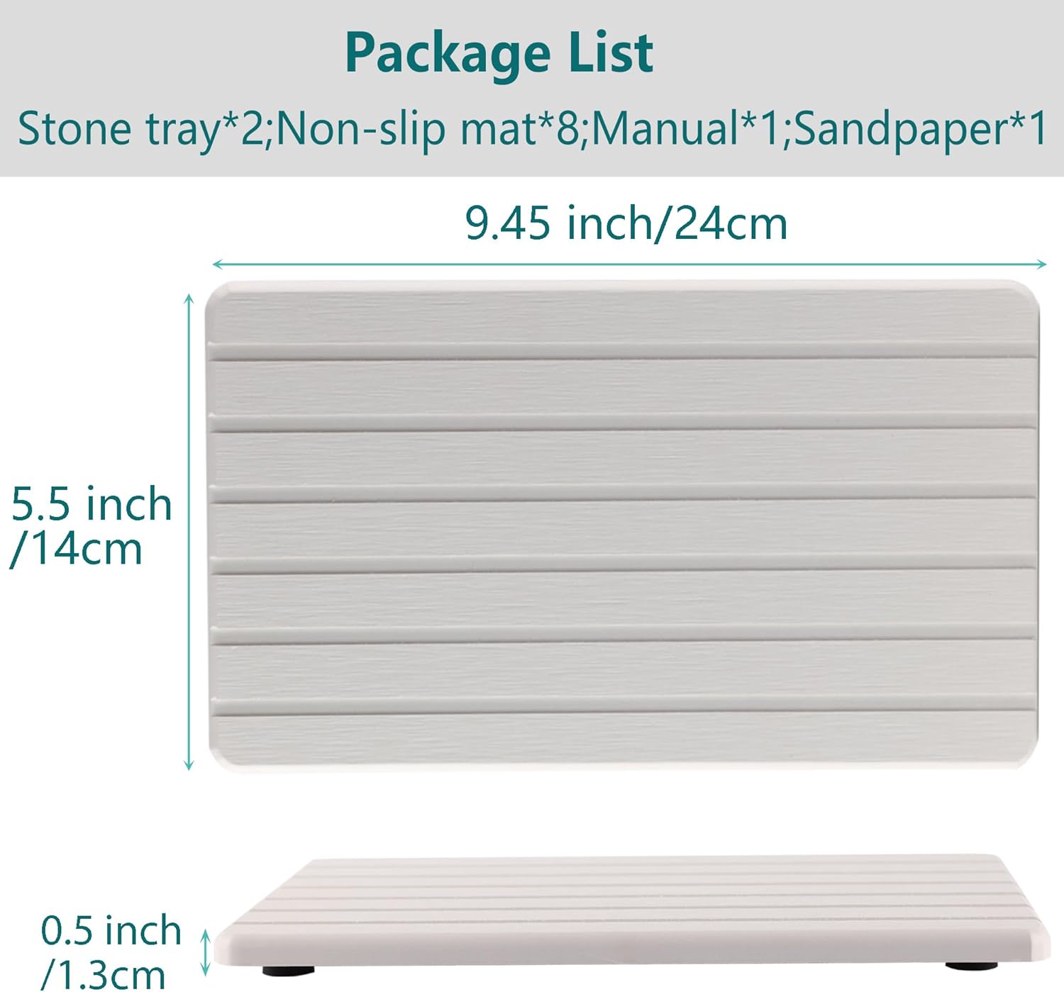 - Size: 9.5 x 5.5inch(24 x 14 cm); 2 pieces per package; Non-slip pad*8; Manual*1; Sandpaper*1; Color: White.