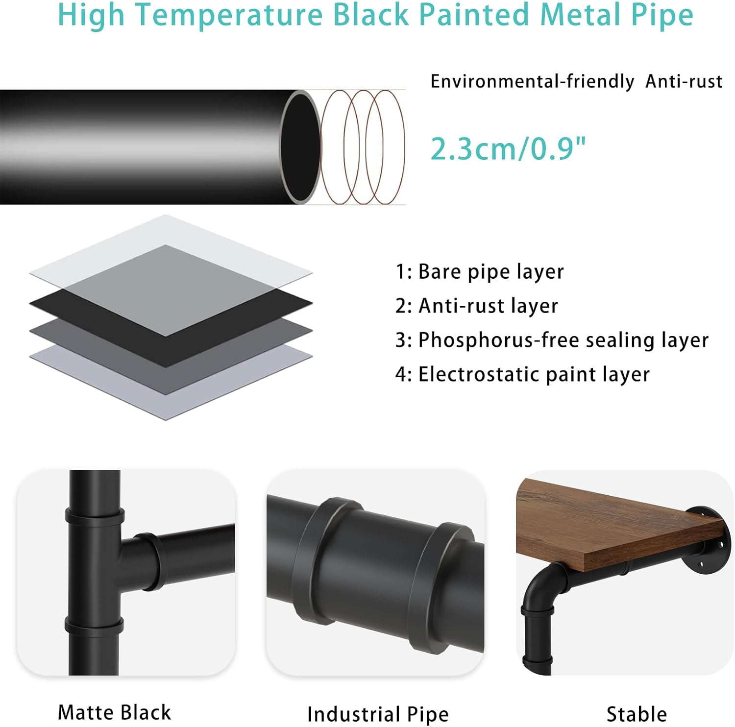 - Durable and Sturdy: This wall mounted hanger is made of a sturdy and durable iron pipe frame, which is rust resistant and corrosion-resistant. It is very sturdy and stable. This wall mount clothes rack can hold 135 pounds