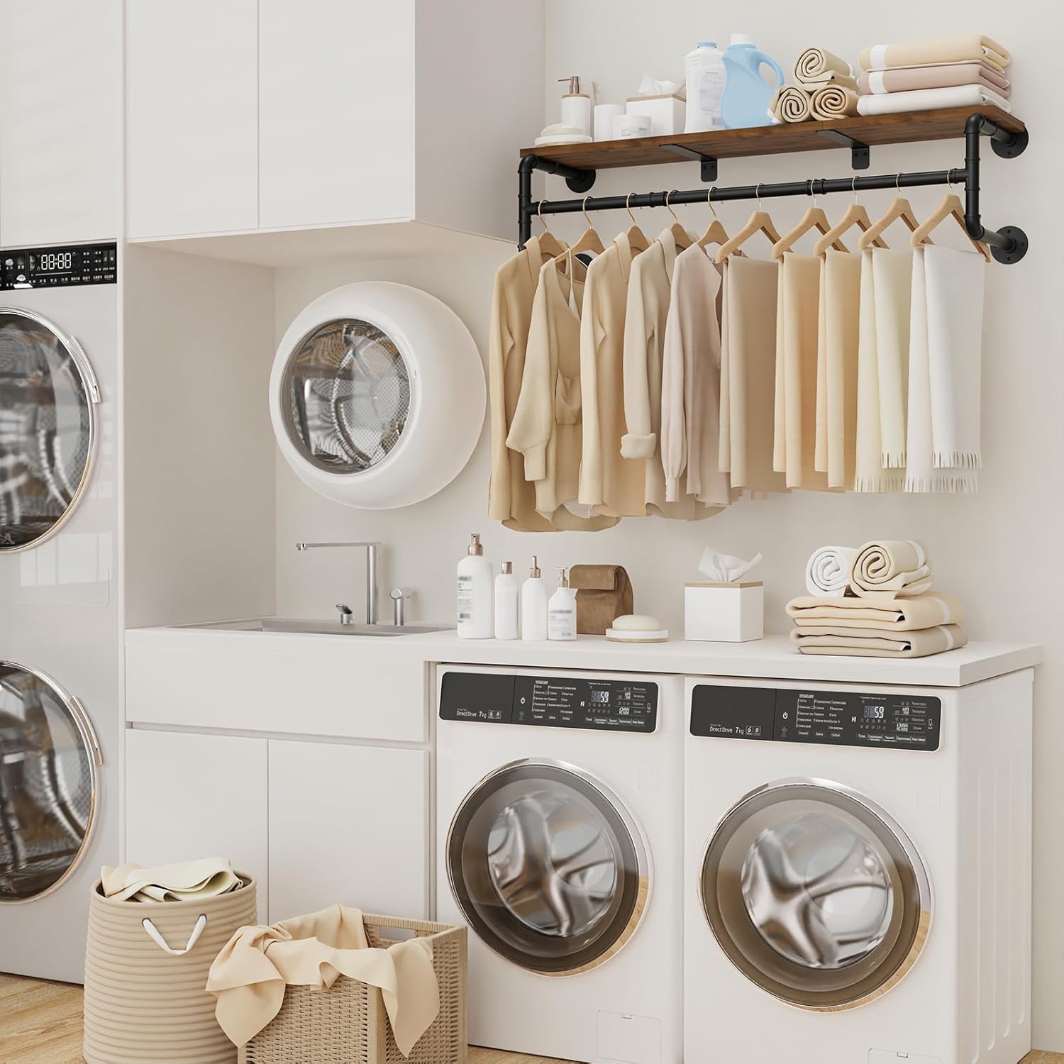 - Space Saving: The shelf with hanging rod are compact and can be mounted on the wall to make better use of wall space and hold a large amount of clothes, making it easy for you to hang and store your clothes