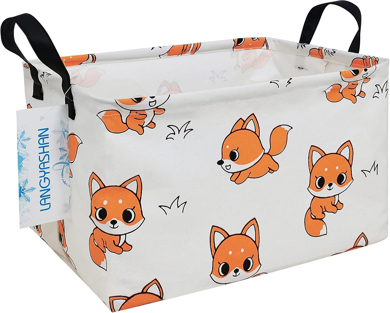 LANGYASHAN Rectangular Storage Bin Collapse Canvas Fabric Cartoon Storage Basket with Handles for Organizing Home Kitchen Boys and Girls Toys Office Closet Shelf Baskets(Rec Fox)