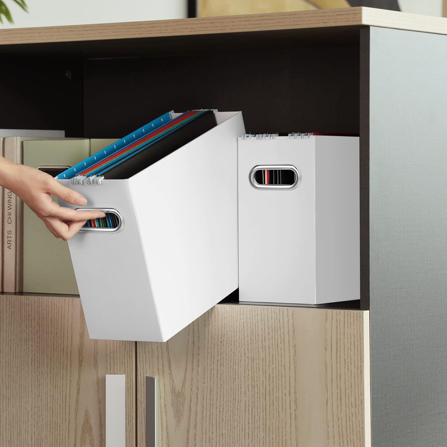 Oterri File Organizer, 2 Packs Small Storage Box, Cardboard File Folder Organizer, Collapsible File Box for Hanging File Folders Letter Size, Portable Filing Organizer with Handle(White)