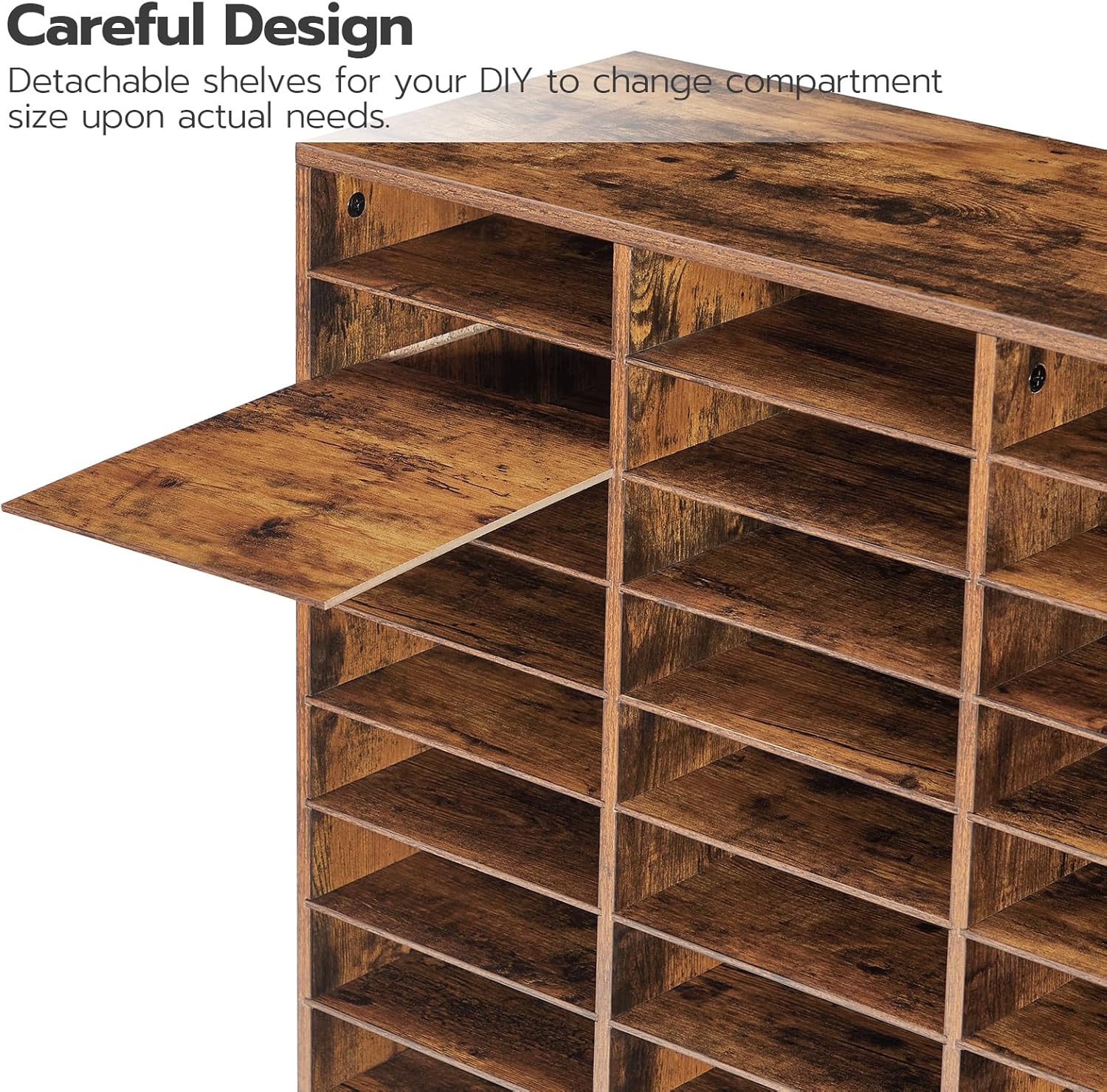 HOOBRO Literature Organizer, 27 Compartments Wooden Mail Organizer, Countertop Literature Sorter with Adjustable Shelves for Home, Office, School, Student Mailbox for Classroom, Rustic Brown FG27WF01
