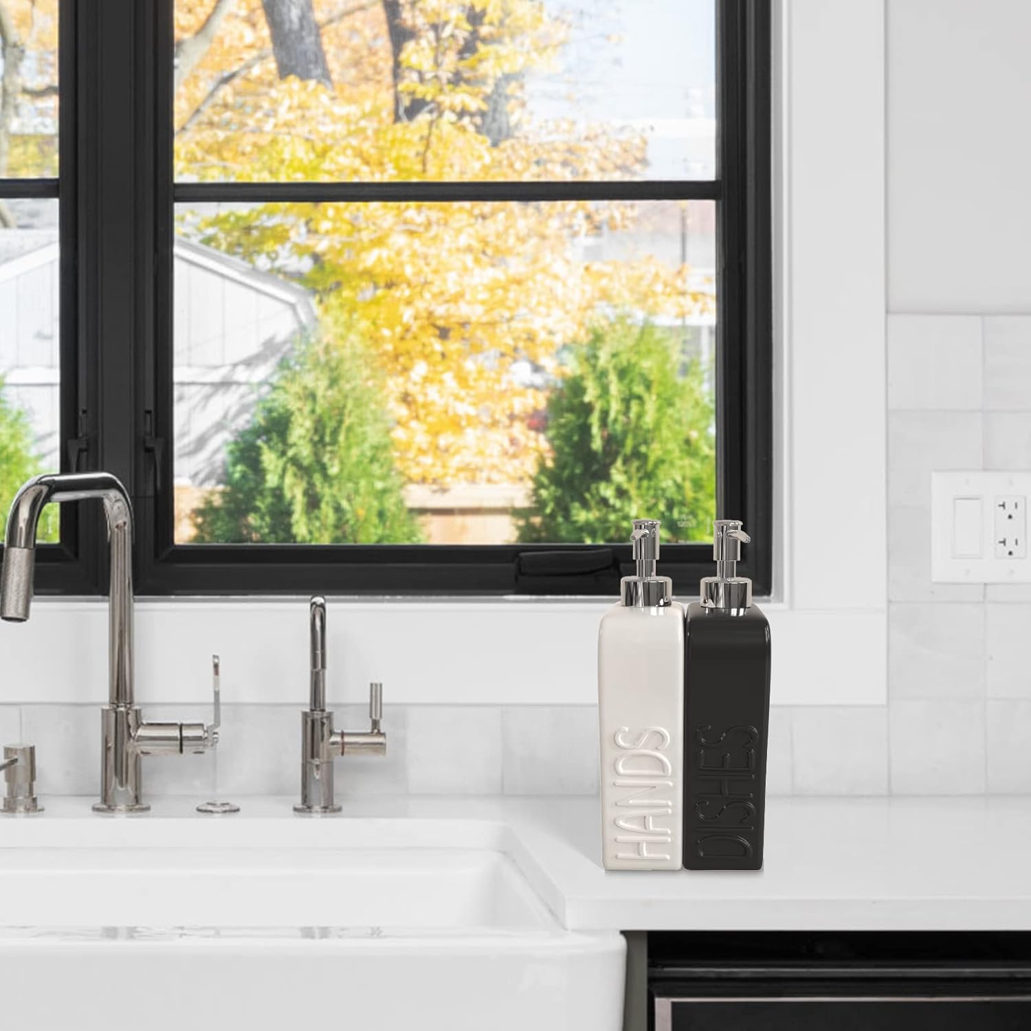 - HIGH QUALITY: Made of high-fired ceramic for a heavy and sturdy feel. Features a rust-resistant stainless steel pump that is smooth and easy to press. Perfect for the kitchen, bathroom, or laundry room