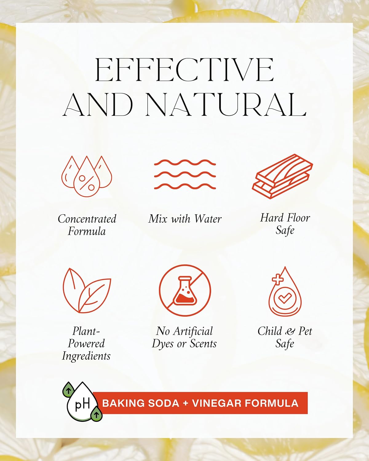 - EFFORTLESS APPLICATION: Simply dilute with water and apply to your mop for effortless, effective cleaning without the need for harsh chemicals, simplifying your cleaning routine. You can also add 4 tbsp into a 16 oz spray bottle of water as it dubles as an odoe eleininating all purpose cleaner. Up to 16 uses per container.