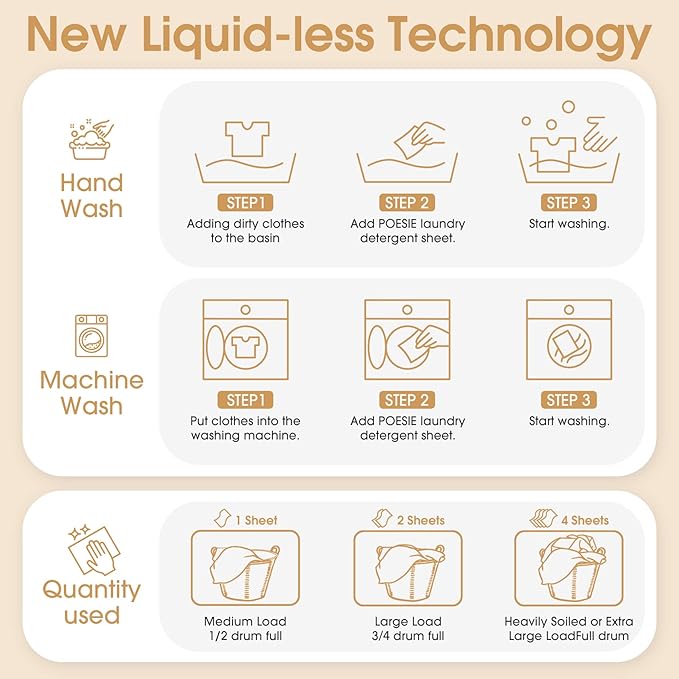 - Hassle-Free Cleaning - Our liquidfree detergent sheets are designed to make laundry day a breeze. No more measuring or pouring, just toss in the sheet and let it do the work. Bringing you the perfect laundry experience
