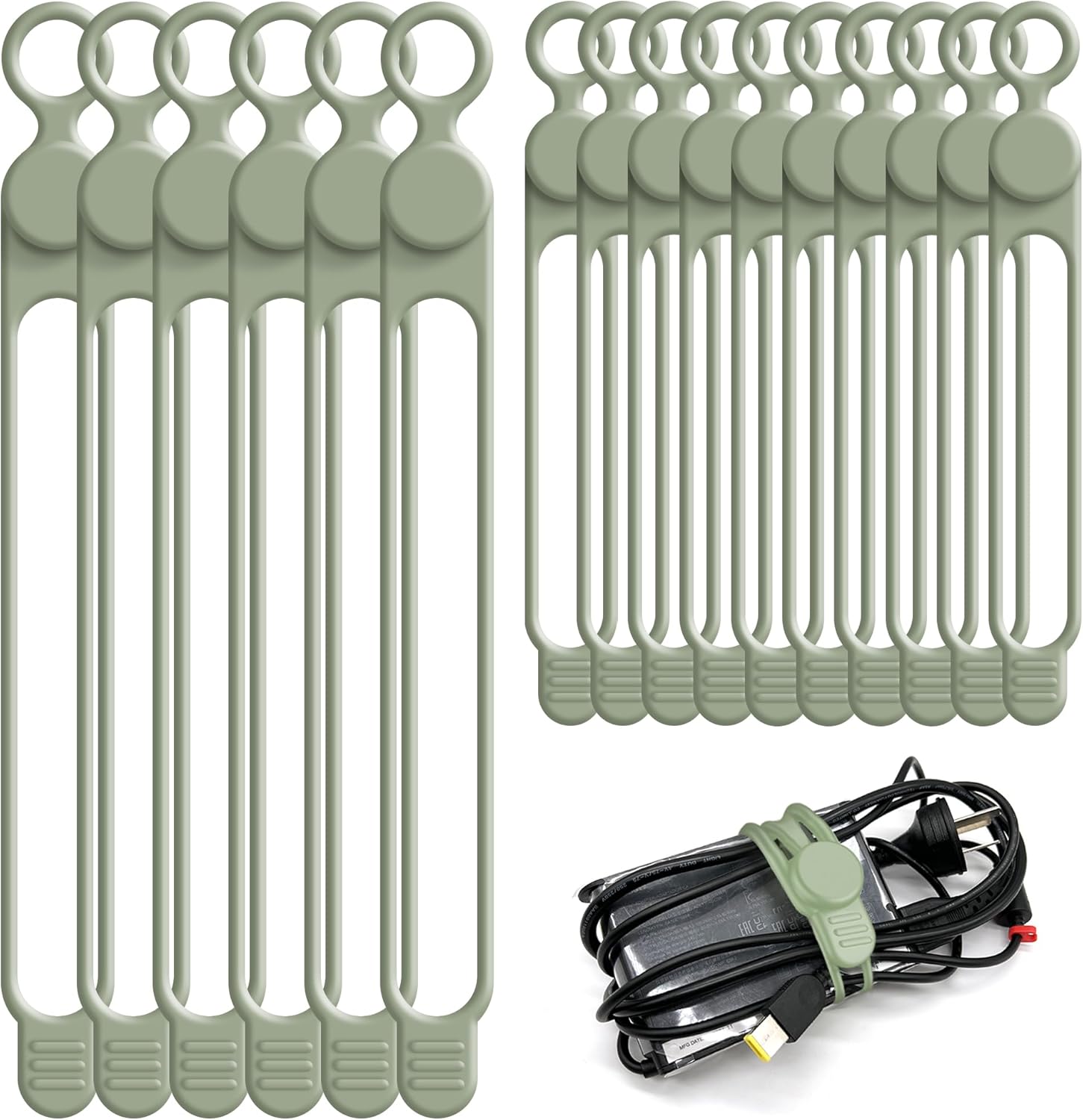 Nearockle Silicone Cable Ties Cord Organizer for Cable Management, 16PCS 4.2" and 7.1" Reusable Cable Organizer Electronic Accessories for Home, Office, Kitchen, School, Travel (Green)