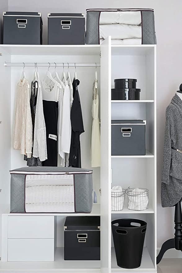 combocube 6Pcs Zippered Storage Bag for Closet King Comforter, pillow, quilt, bedding, Clothes, Blanket Organizers with Large Clear Window & Carry Handles Space Saver