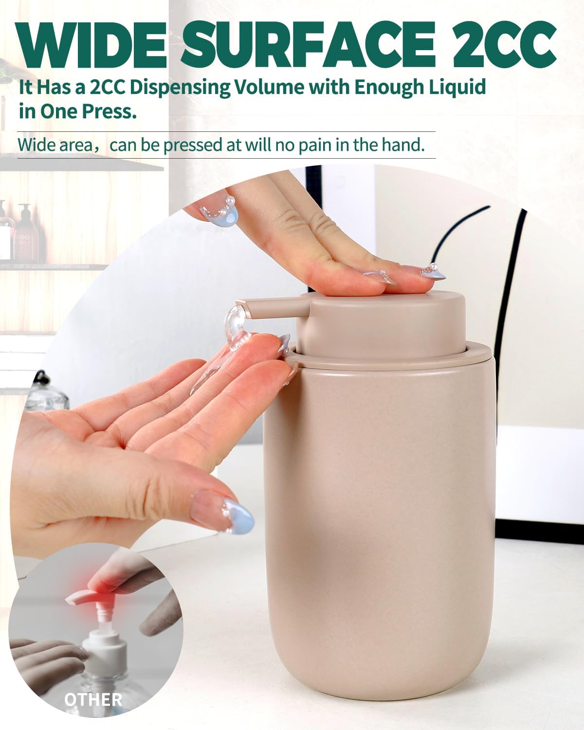BosilunLife Lotion Pump Dispenser - Matte Khaki Soap Dispenser Bathroom Ceramic Dish Liquid Soap Dispenser for Kitchen, Bathroom Countertop Soap Dispensers (Khaki, Liquid Pump)
