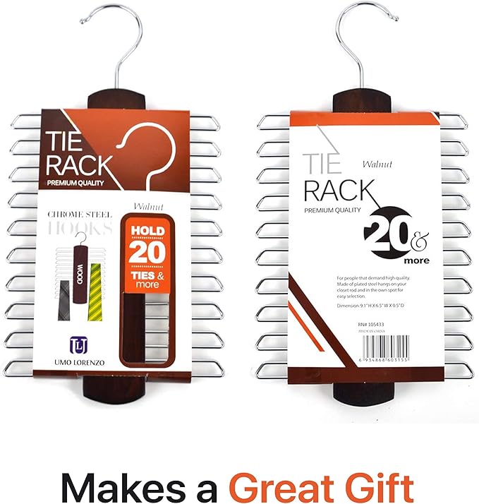 - SECURE: Securely holds your tie, belt, or scarf collection and is a huge space saver by holding 20 of your ties, belts or scarves. The tie rack is a helpful closet organizer.