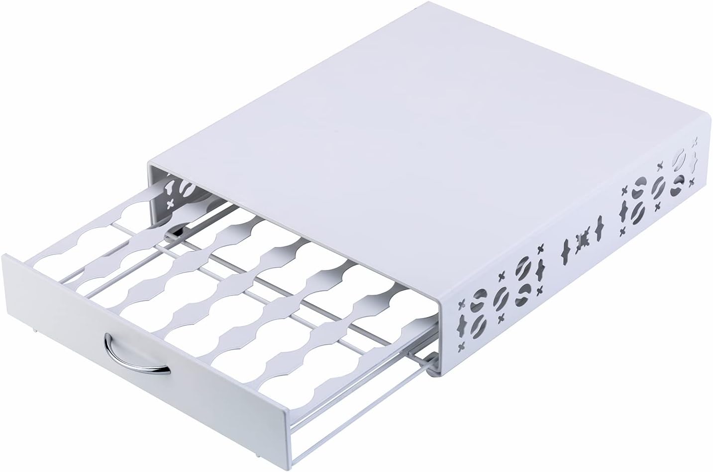 Rice rat Coffee Pod Holder for Keurig Pods iron Top Drawer,K Cup Holder Capsule Display Storage compatibility 42 k-cup Pods (white)