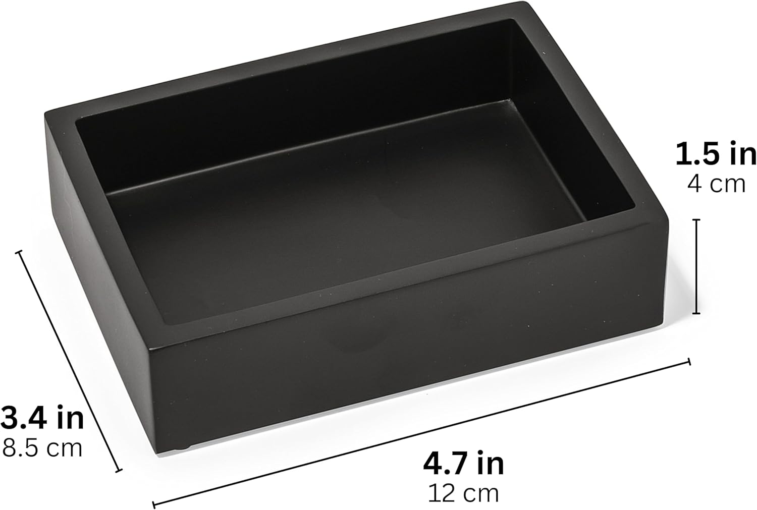 Matte Black Square Soap Dish, Hand Soap Holder for Bathroom, Shower, Countertop, Bathtub, Wash Room, Kitchen with Non-Slip Protective Pads