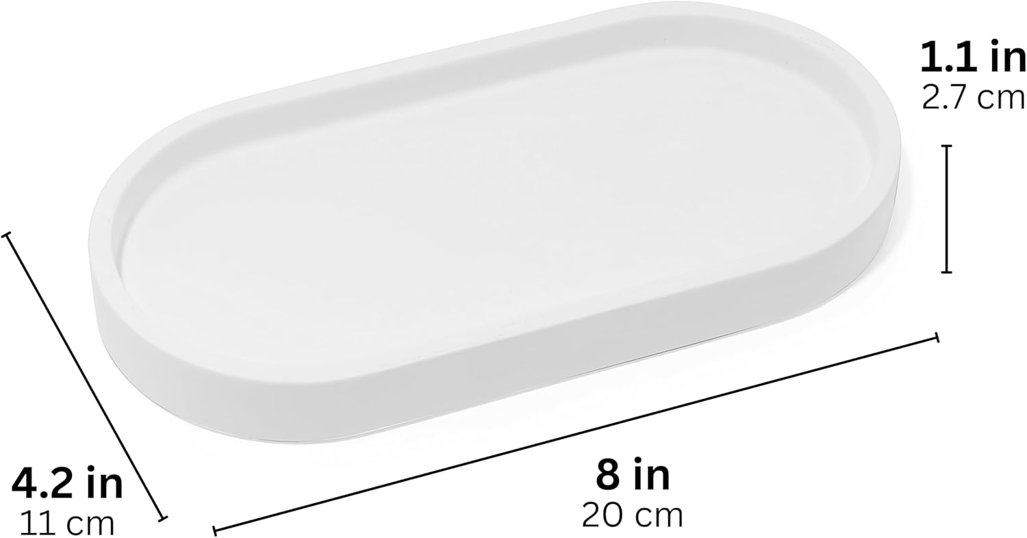 Matte White Round Soap Dispenser Tray, 8” Soap and Lotion Bottle Tray Organizer Plate for Bathrooms, Kitchens, Countertops - Holds 2 Soap Dispensers