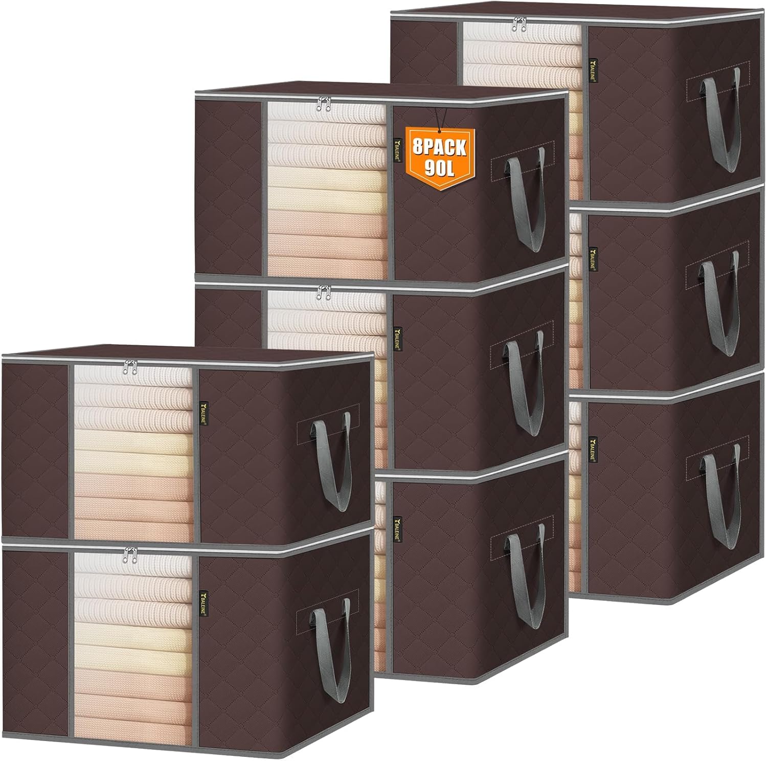 BALEINE 8 Pack Clothes Storage Bags, 24 Gallon Storage Containers with Reinforced Handle, Sturdy Zipper, Closet Organizer for Blanket, Comforter, Pillow, Bedding (Brown, 8 Pack)