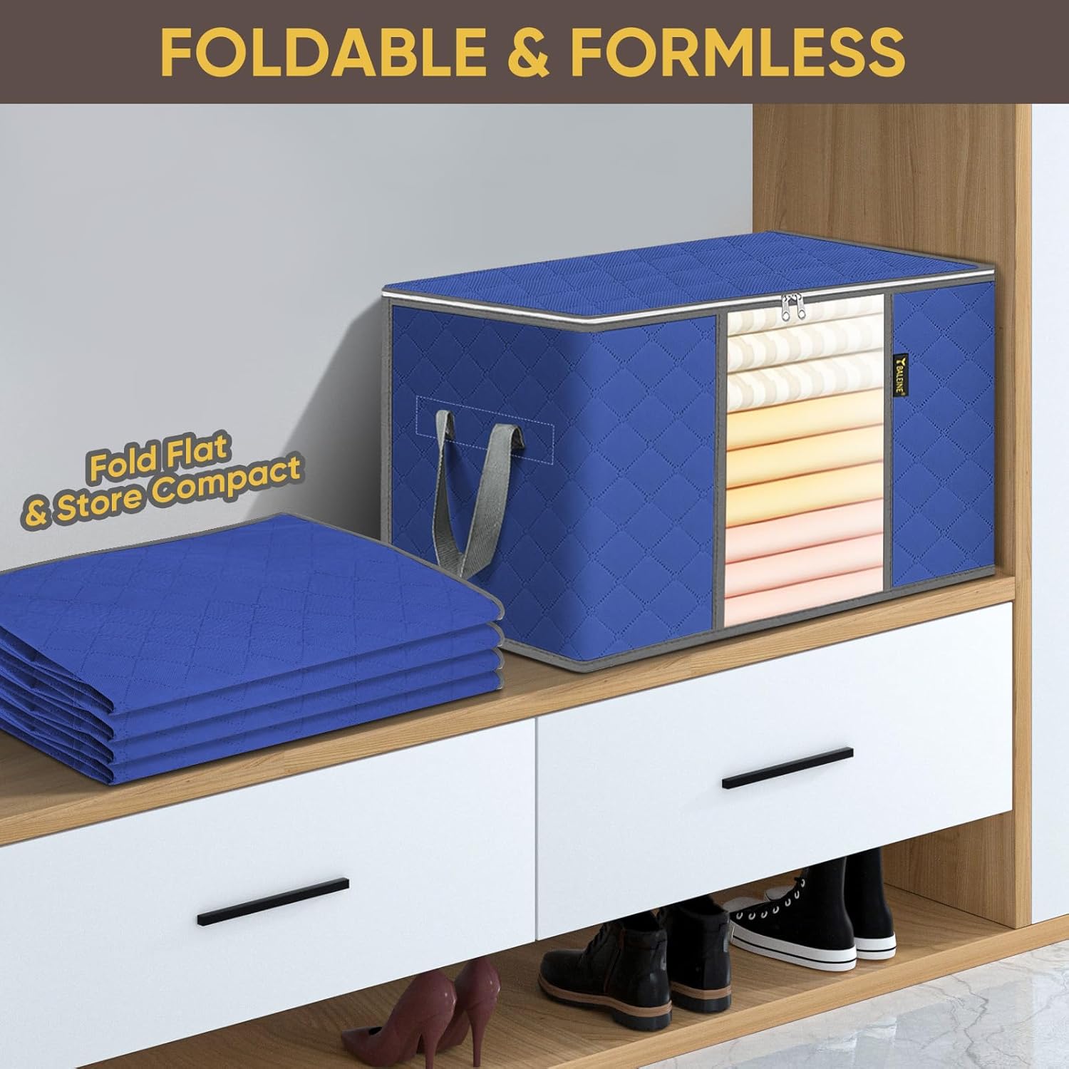 BALEINE 6 Pack Clothes Storage Bags, 24 Gallon Storage Containers with Reinforced Handle, Sturdy Zipper, Closet Organizer for Blanket, Comforter, Pillow, Bedding (Blue, 6 Pack)
