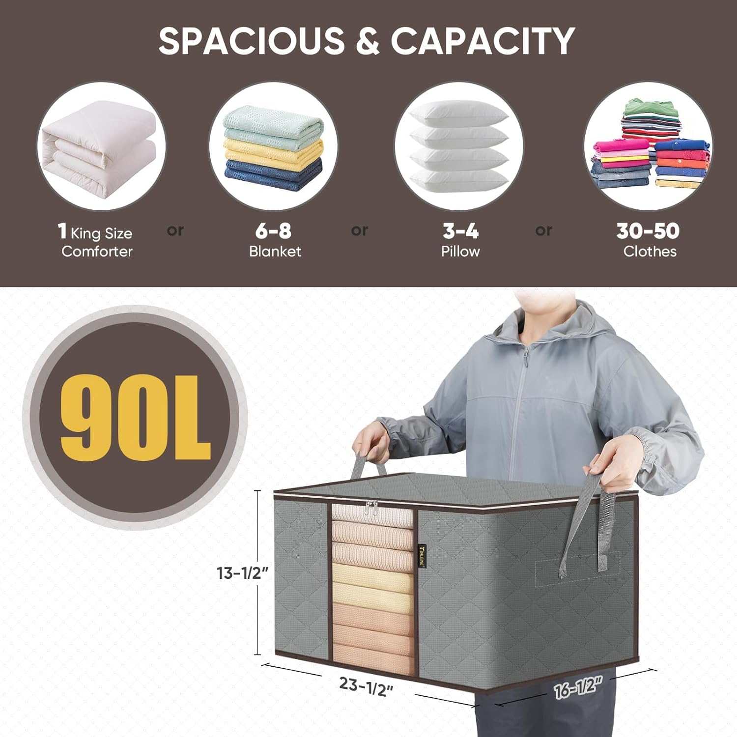 - Large Capacity: With a spacious 24 Gallon (90L) capacity, this storage bag is perfect for storing bulky items like bedding, clothing, and towels, as well as shoes, and other household items; A perfect alternative for moving bags, under bed storage and storage bins with lids