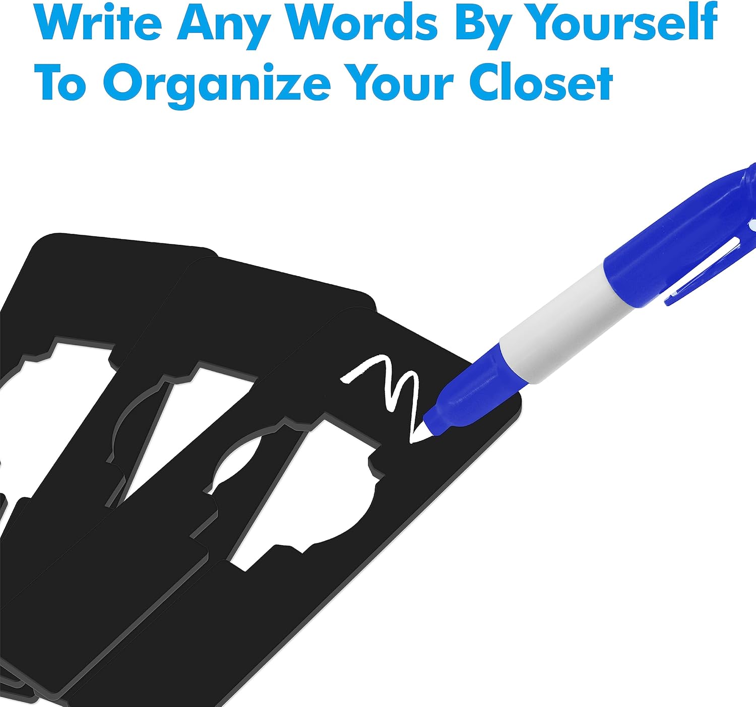 8 PCS Rectangular Black Plastic Closet Dividers with a Bonus Marker, Writable and Reusable for Sorting Clothing Size, Color, Brand, Size 2” x 5.4’’ (Inner Diameter 1.4”)