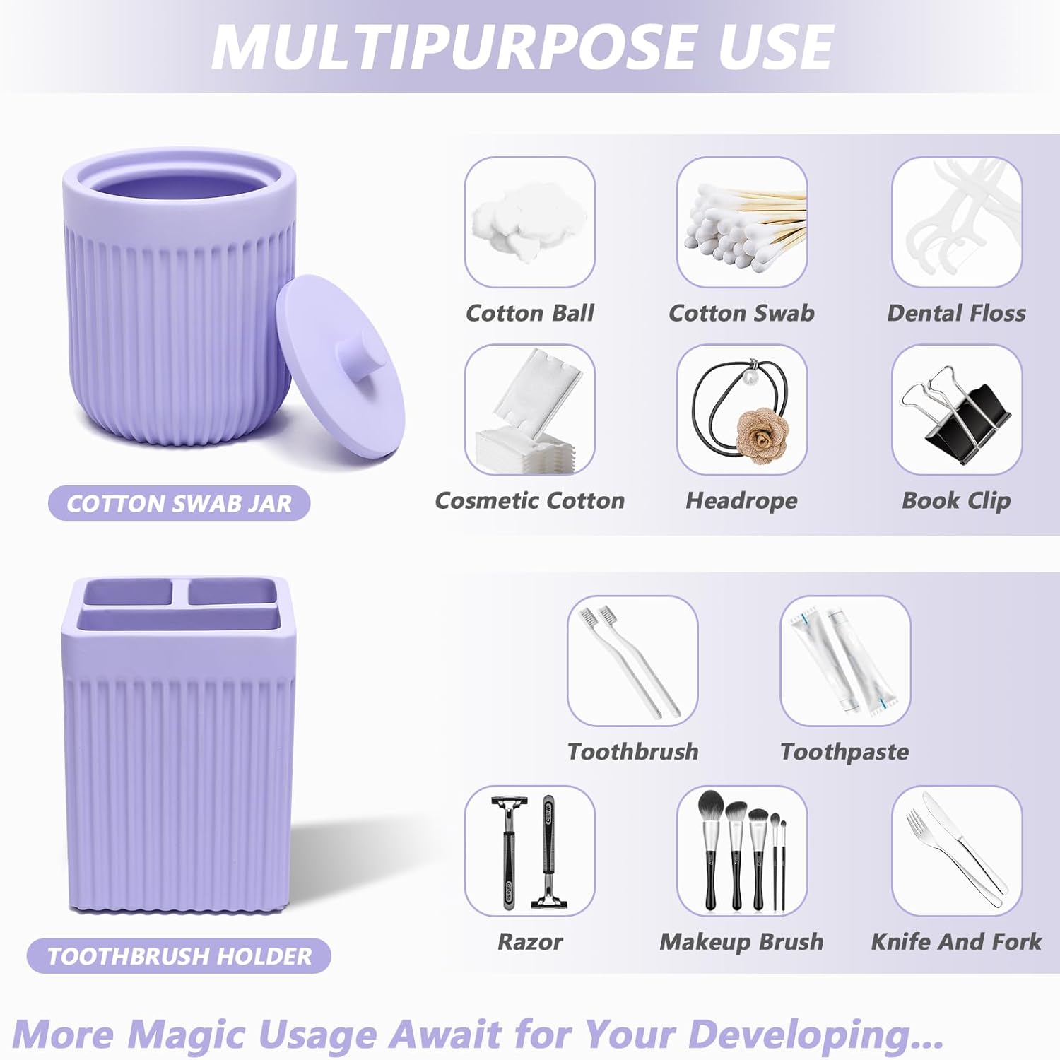 Resin Light Purple Bathroom Accessories Set 5 Pcs, Lotion Soap Dispenser, Toothbrush Holder, Bathroom Tumbler, Qtip Holder and Vanity Tray, Bathroom Countertop Organizer Set for Home Apartment