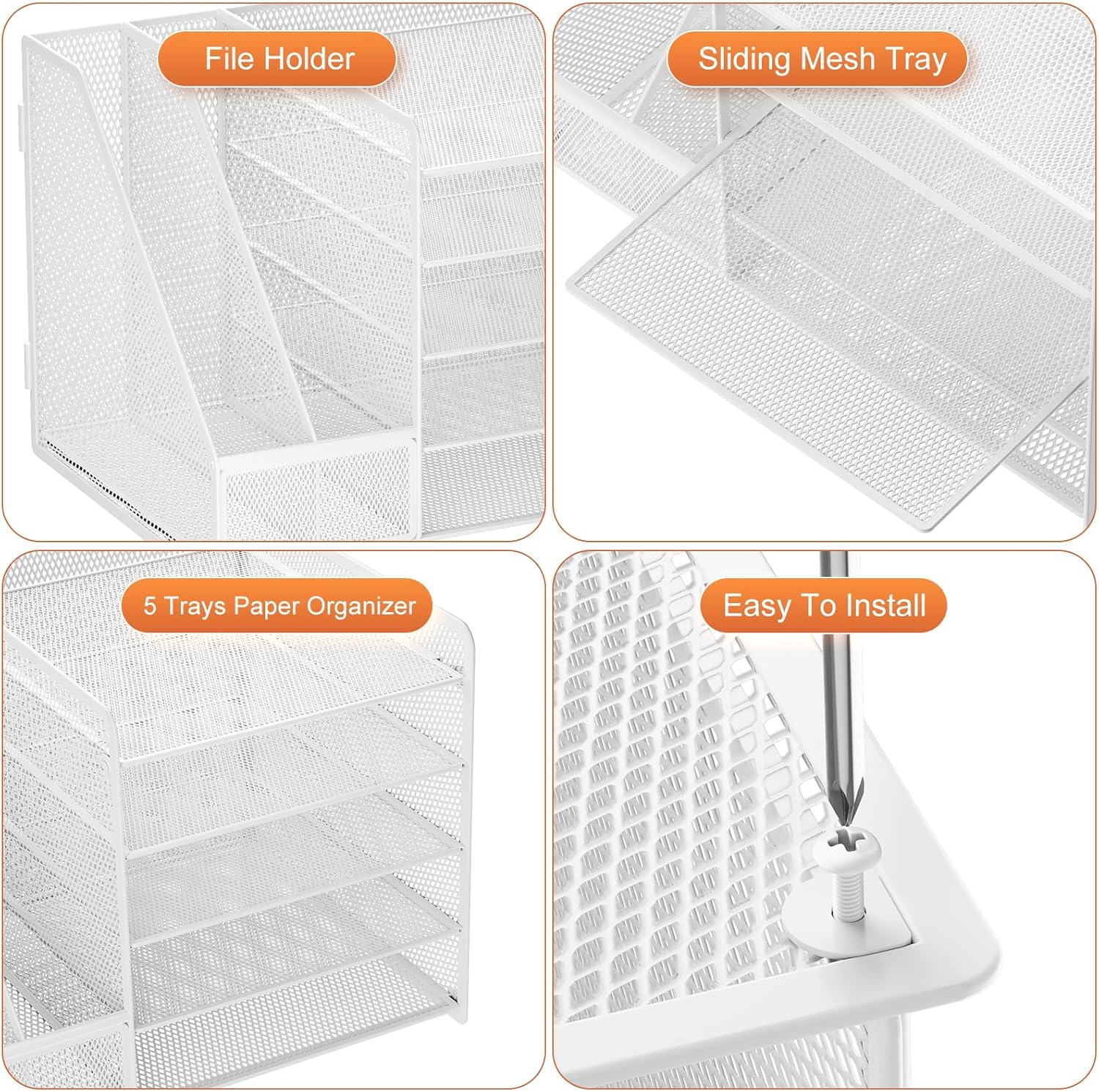 - 【Premium Material】The office supplies desk organizer is made of lightweight durable metal mesh and reinforced with a solid steel frame that makes it have long-lasting strength and reliable performance