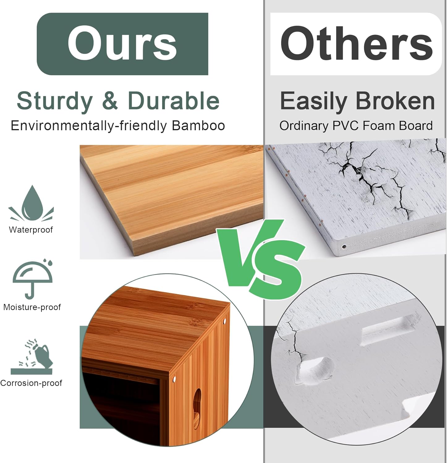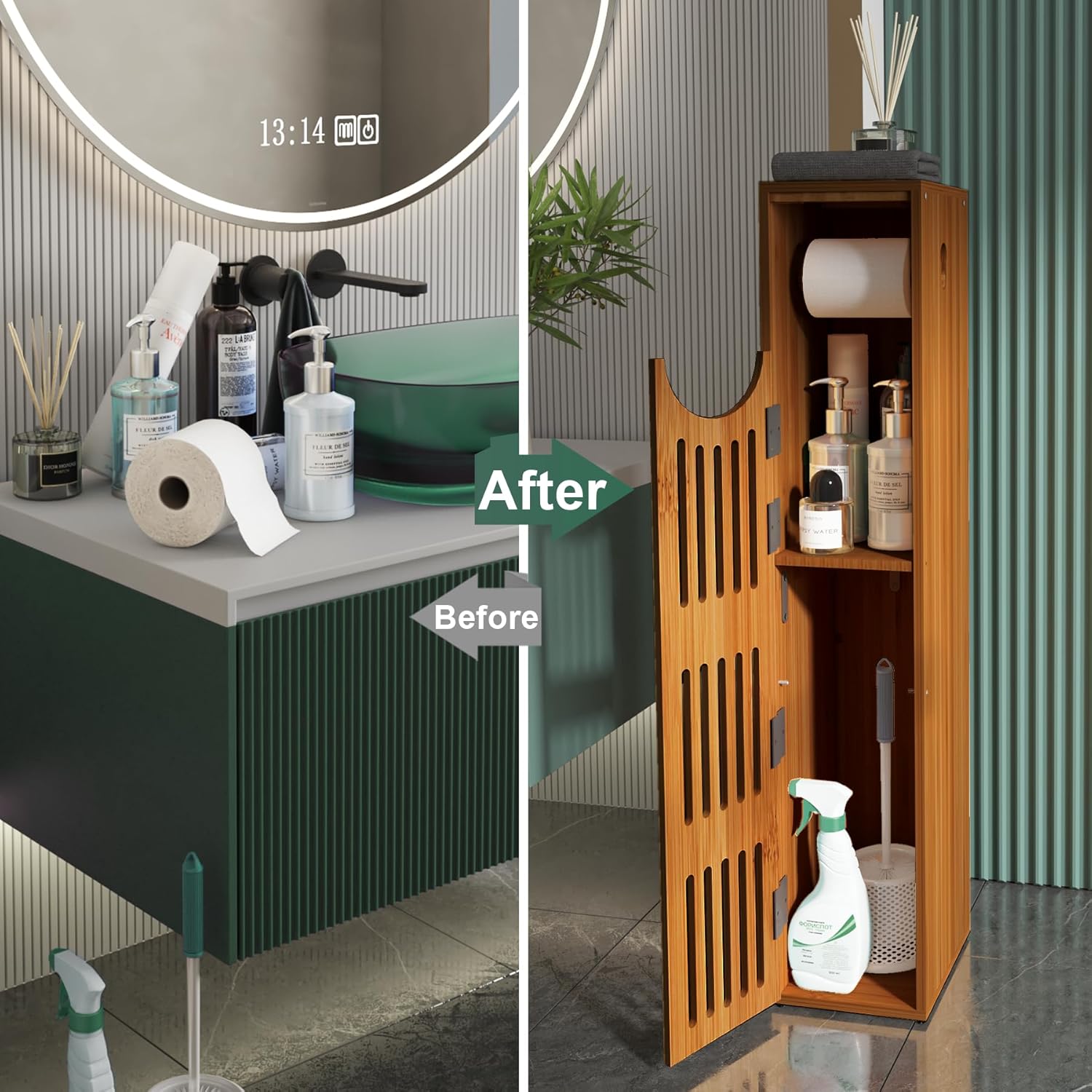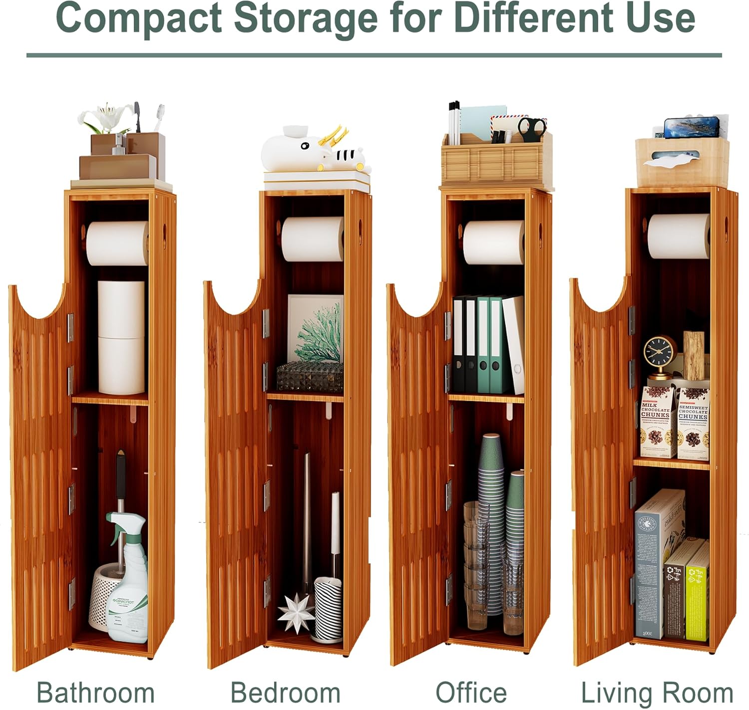 - Upgraded waterproof bamboo toilet paper storage cabinet: Made of premium environmentally-friendly bamboo and with its waterproof coating, AmazerBath small bathroom storage cabinet is much sturdier and more durable than other easily-broken PVC foam boards.