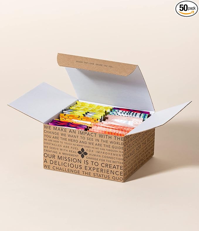 - CREATE A PERFECT BREW - Each tea assortment box includes 50 individual herbal teas sachets, enough for 50 strong cups of delicious tea! Each of our herbal tea bags are blended for one 8 oz cup of tea. For our herbal tea blends, brew water to 206 degrees Fahrenheit and steep for 3-5 minutes, or up to 7 minutes for stronger notes.