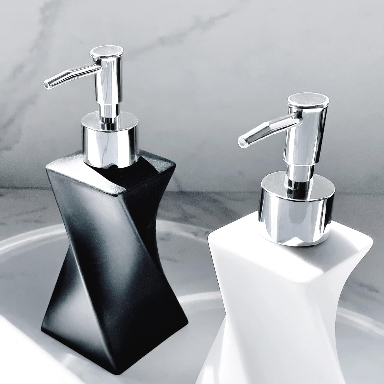 - BLACK & WHITE SET: Get the complete modern look. This 2-pack includes one Arctic White and one Matte Black dispenser. The perfect his and hers bathroom accessories set for a coordinated, stylish sink.