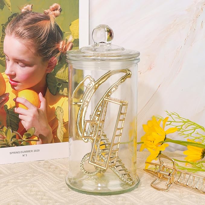 - Ideal Size Storage Containers: With the perfect size, these canisters can better organize your restroom, bathroom, vanity, laundry room, bedroom, saving your countertop much space while adding a touch of elegance to your decor! Great for facial pads, cotton balls, bath salts, bath bombs, soaps, scented wax melts, makeup brushes, beauty eggs, face brushes and more.
