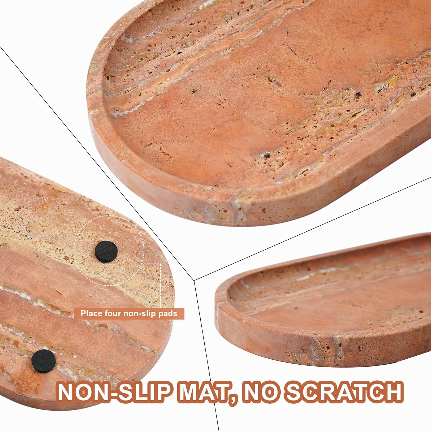 - Natural Turkish Travertine: Each oval tray is made from authentic, natural travertine sourced from Turkey, ensuring unique patterns and variations in every piece.