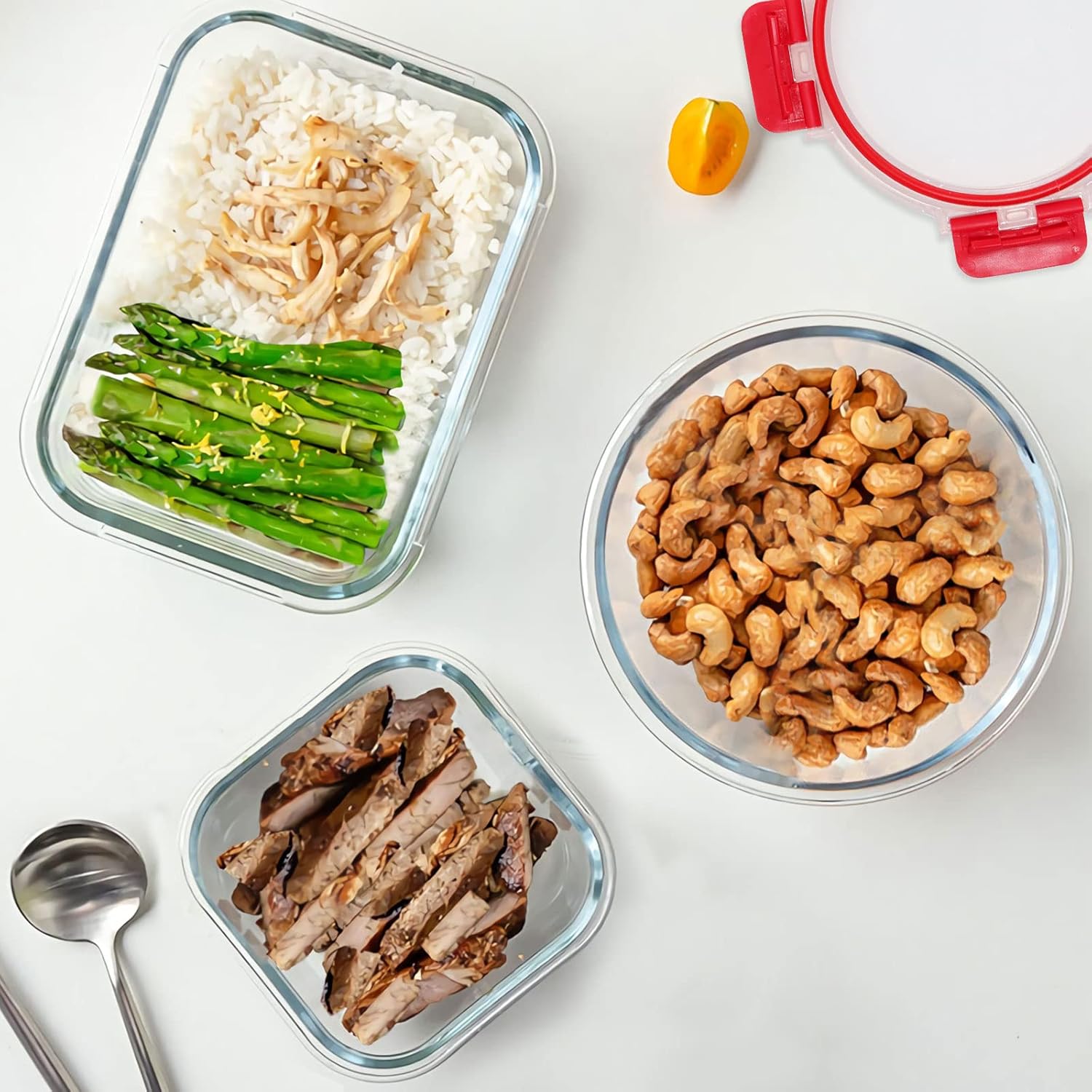 - AIRTIGHT SNAP LOCKING LIDS: KOMUEE Glass food storage containers use snap lock lids with silicone seals to prevent the food from spilling, and ensure the food last fresh for longer than normal plastic food storage containers. These lids are easy to open, shut and help stop leaking, while they will not break off easily.