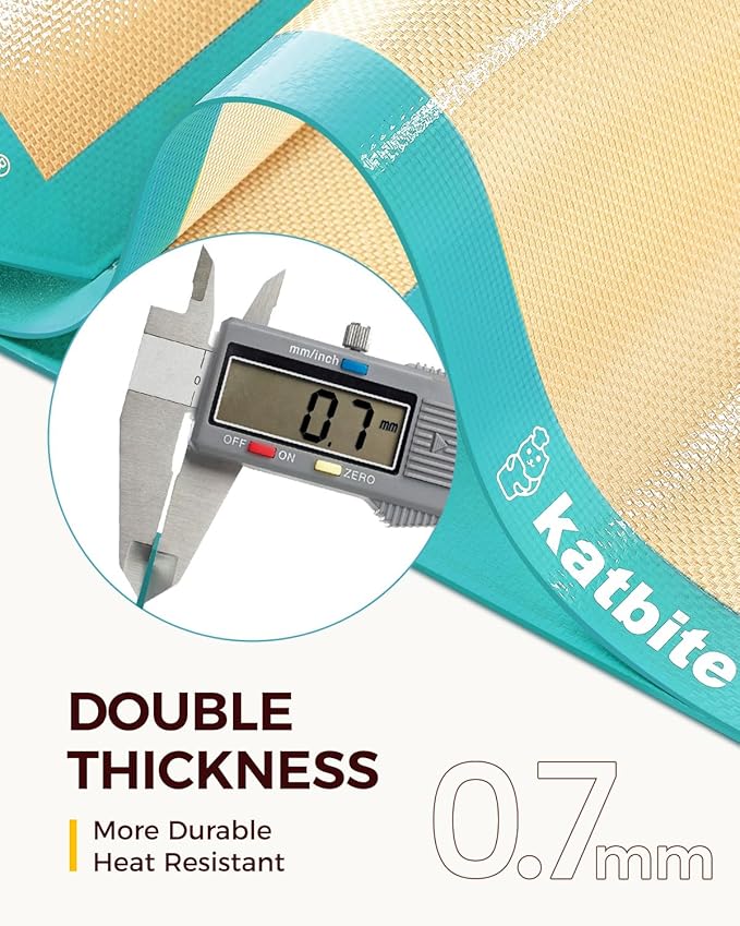 - šššššš ššššššššš: Experience culinary confidence with our DOUBLE THICKNESS silicone baking mats. Boasting a substantial 0.7 mm thickness (approx. 1/32"), they outmatch standard mats (0.3 mm) with unparalleled stability and durability. Say goodbye to slipping or wrinkling ā our extra thick mats stand strong, ensuring your baking endeavors are flawlessly executed. Elevate your kitchen with quality you can rely on.