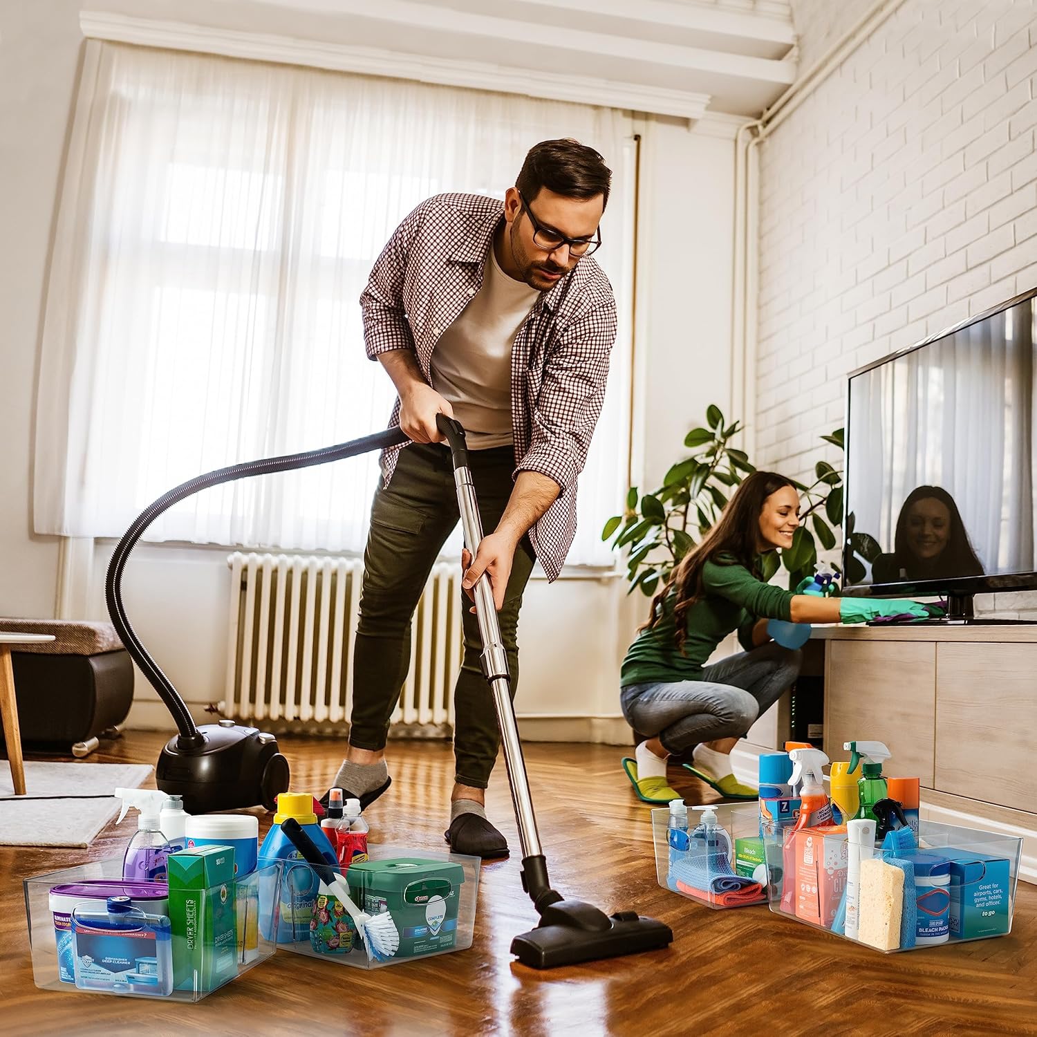- PORTABLE & STACKABLE – Built-in, easy-grip side handles make it easy to transport from place to place. They also come with a removable divider! These plastic storage bins are perfect for pantry organization and storage or kitchen organization. These clear storage bins are great for anywhere in your home.