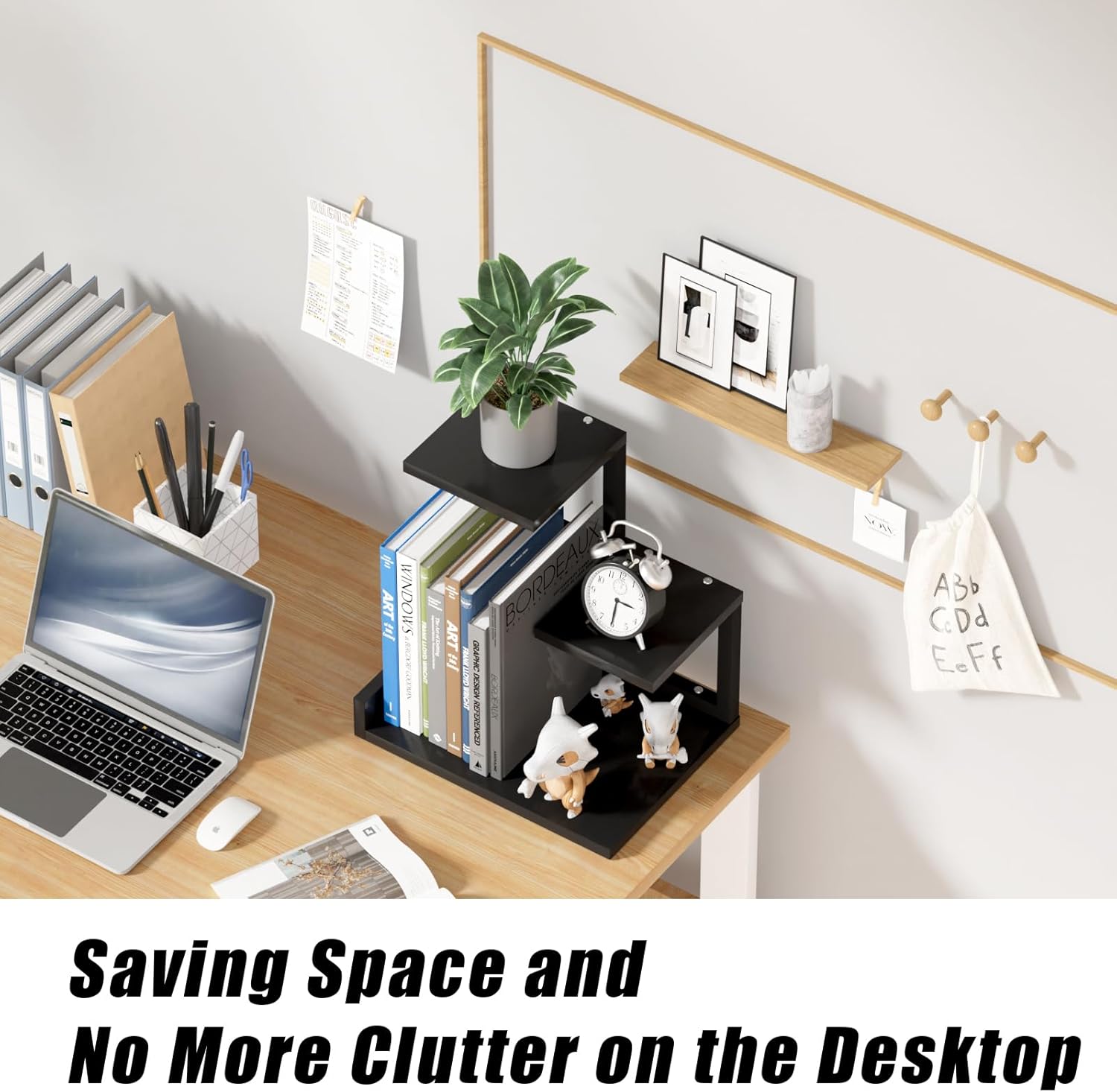 Gannyfer Desk Shelf Organizer - Wood Desktop Shelf, Freestanding Desk Hutch Office Decor, 3 Tier Storage Display Rack, Small Bookshelf with Metal Frame for Books/Plants/Toys (Black)