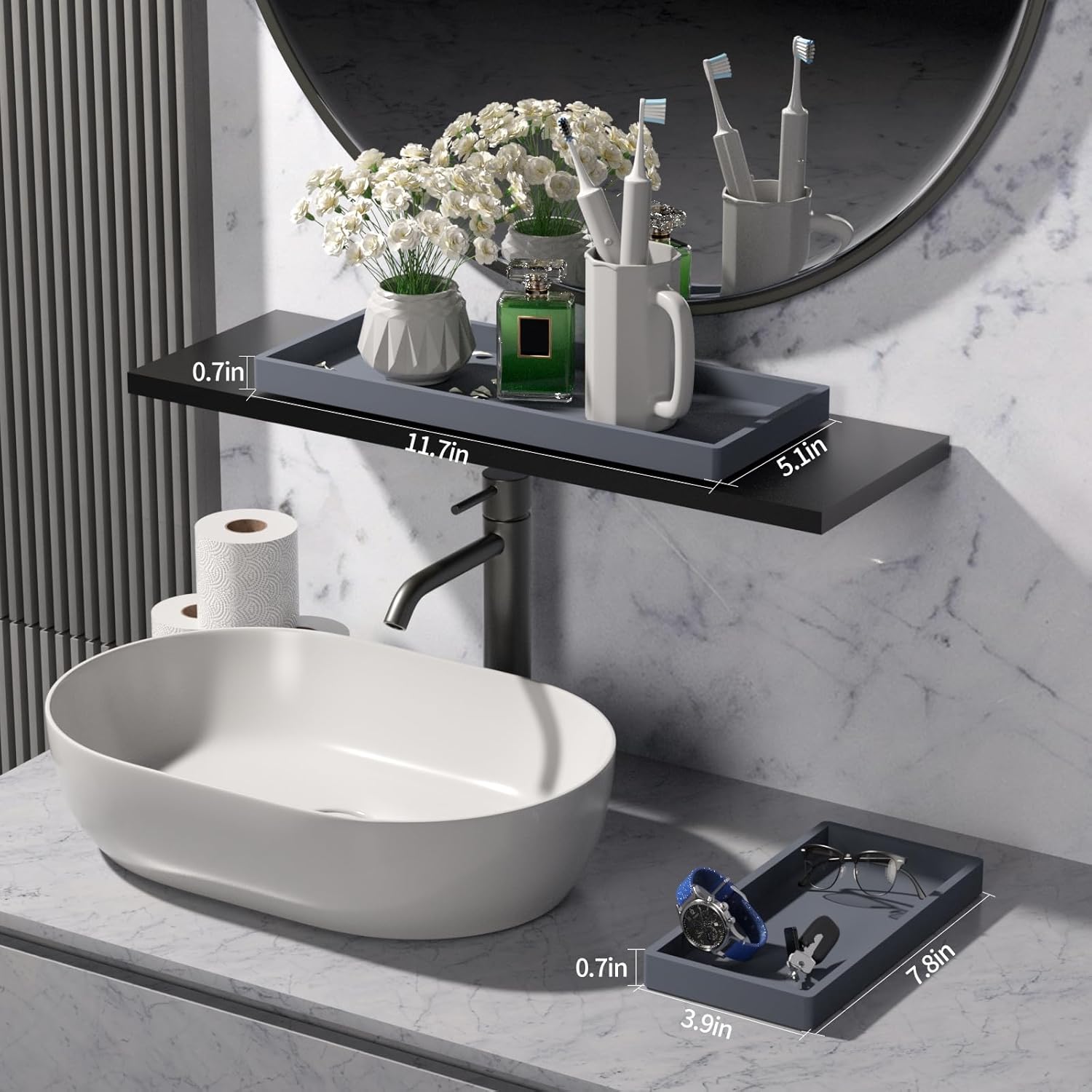 - 【PRODUCT SET SIZE】Shatterproof silicone bathroom trays set size. Small vanity tray: 7.8 x 3.9 inch: Large vanity tray: 11.8 x 5 inch. The serving tray takes up little space and is easy to move and carry. Serving trays ideal for storing decorations or various items.