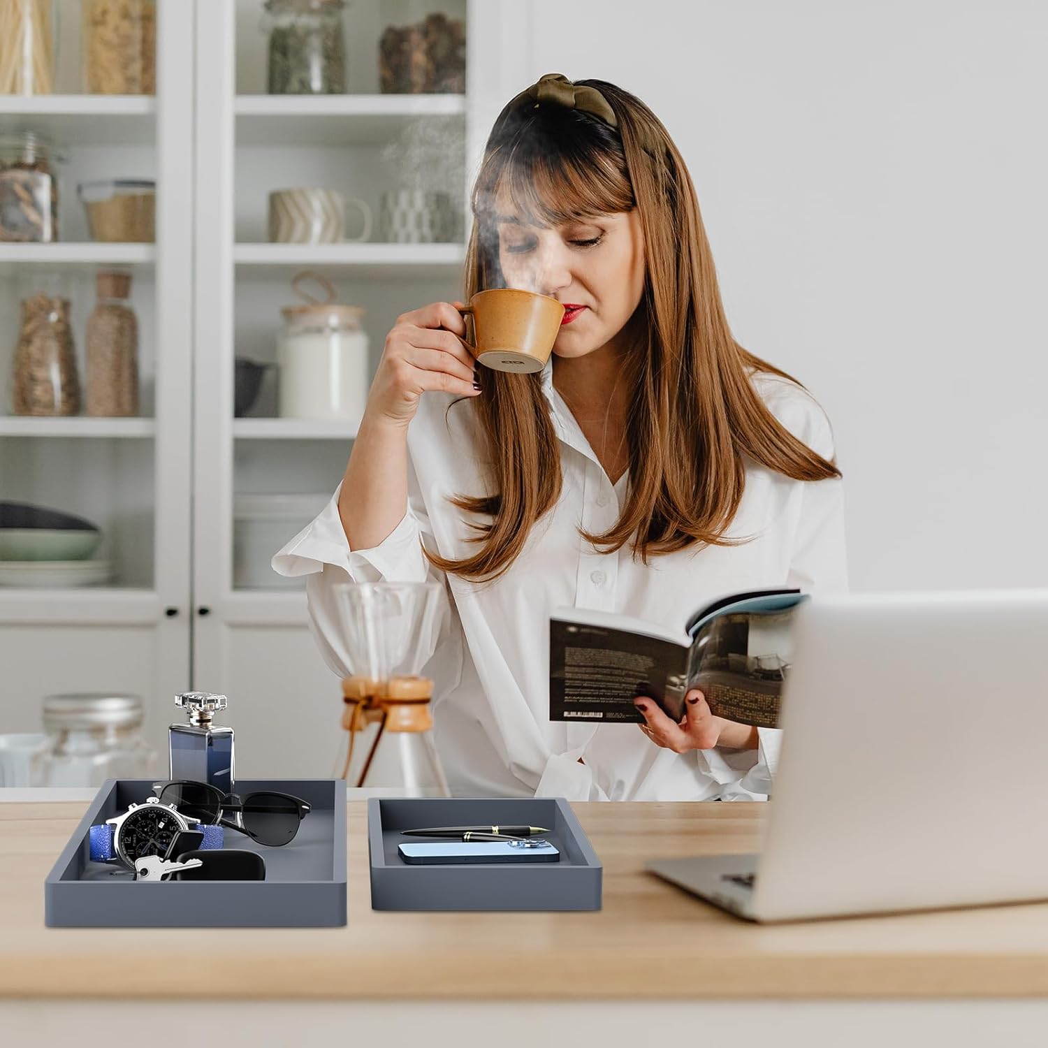 BBK Bathroom Vanity Tray- 2 Pack (7.8" and 11.8") Silicone Bathroom Tray for Counter, Perfume Key Trinket Ring Tray, Decor Soap Dispenser Countertop Tray for Kitchen Sink Organization.(Gray)