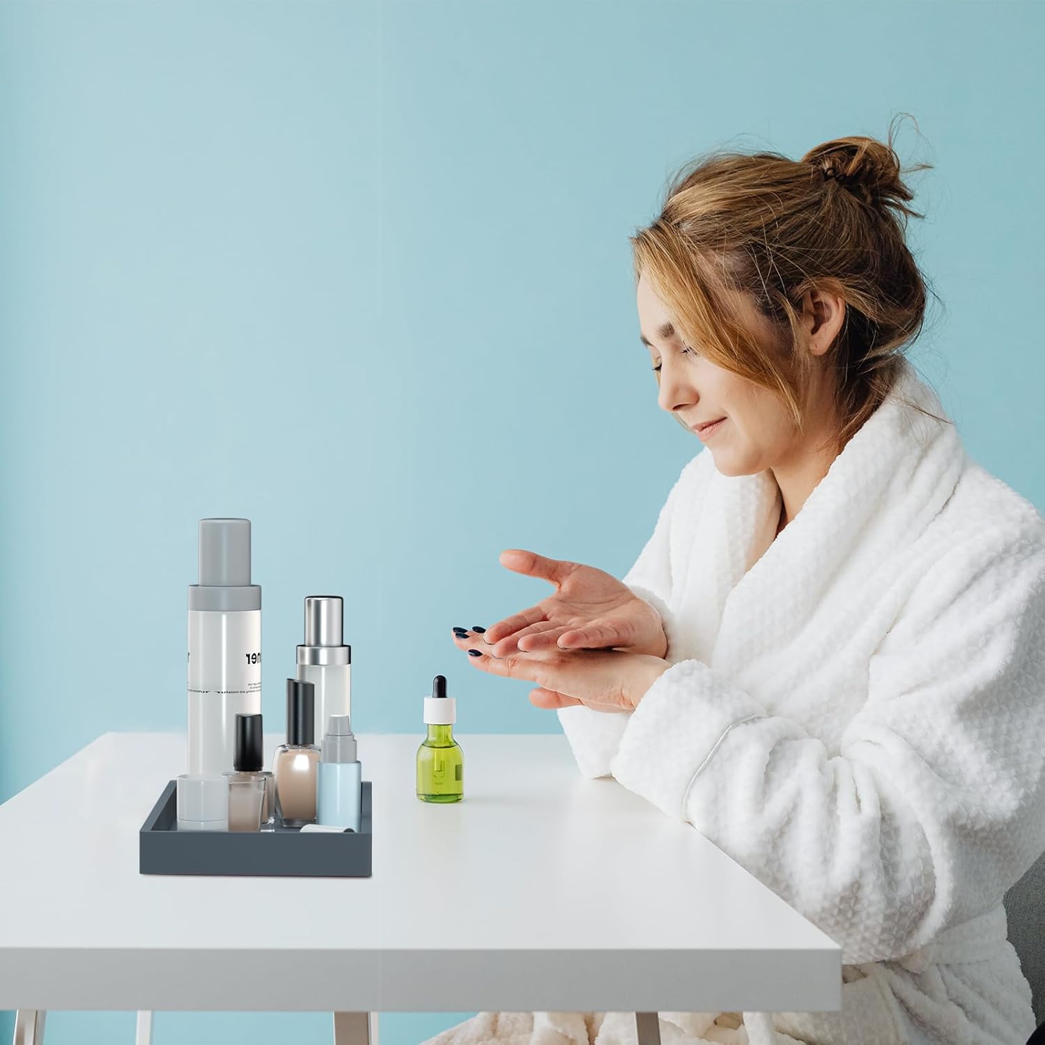 - 【WIDE APPLICATION】Silicone vanity tray trays bring order and beauty to your home decor. create the living surroundings more comfortable and elegant. It can be better applied in drawer, table, kitchen, bathroom, living room, bedroom washroom, indoor and outdoor. You can also design more usage scenarios you require.