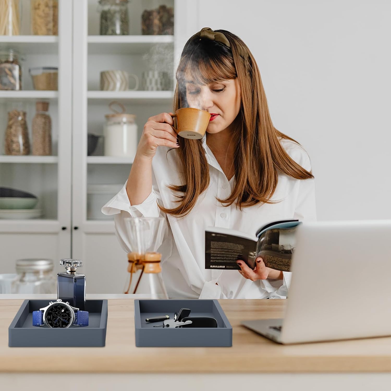 BBK Bathroom Vanity Tray 7.8 in - 2 Pack(Small) Silicone Bathroom Tray for Counter, Perfume Key Trinket Ring Tray, Decor Soap Dispenser Countertop Tray for Kitchen Sink Organization (Gray)