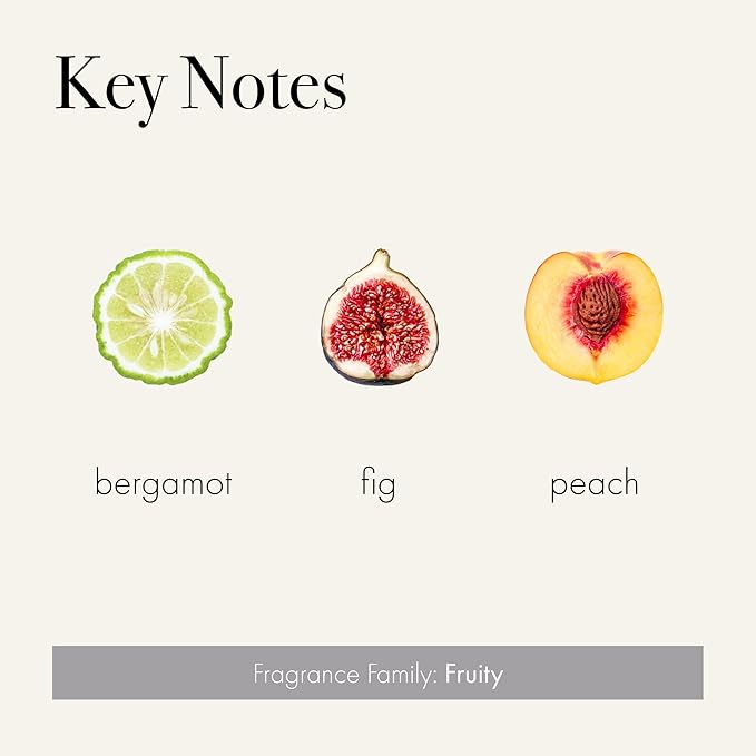 - SCENT - This succulent and vibrant fragrance features complementary notes of juicy and earthy fruits, including hints of Sicilian bergamot, ripe peach, and Paradiso fig, a renowned Italian variety with vibrant green skin and vivid red pulp.