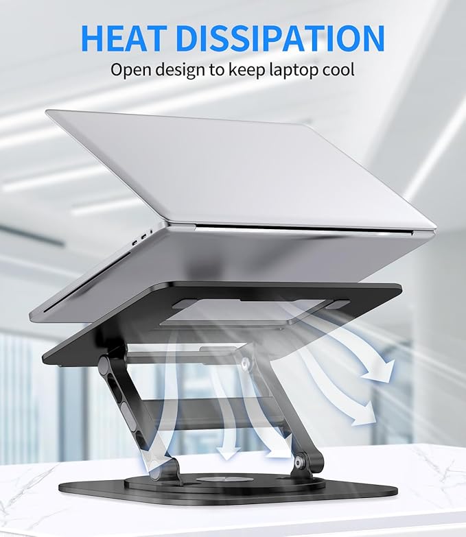 Adjustable Laptop Stand with 360 Rotating Base, Stable Computer Stand for Laptop Ergonimic Foldable Laptop Riser for Desk Compatible with MacBook Pro/Air Notebook up to 16 Inches, Black