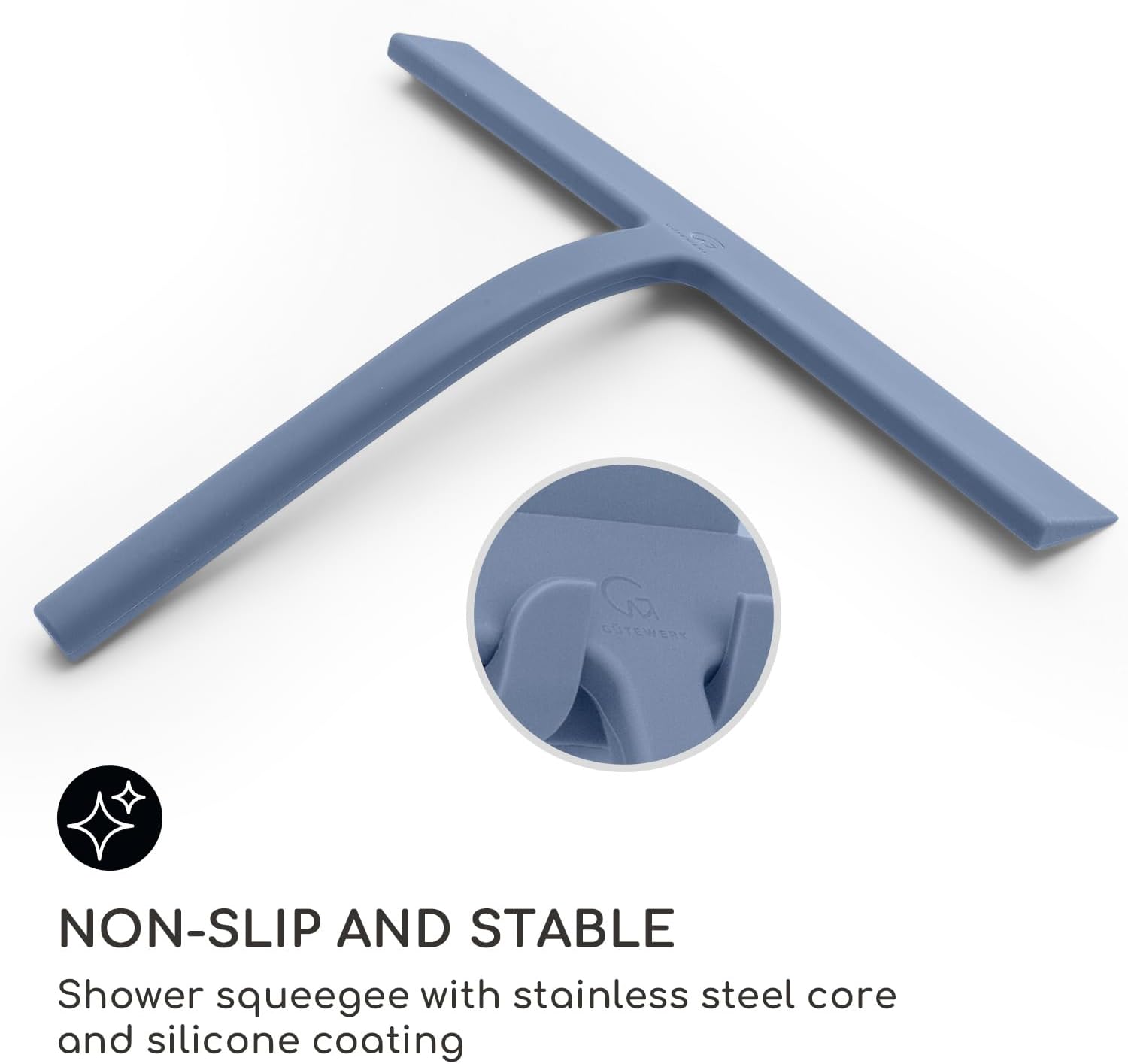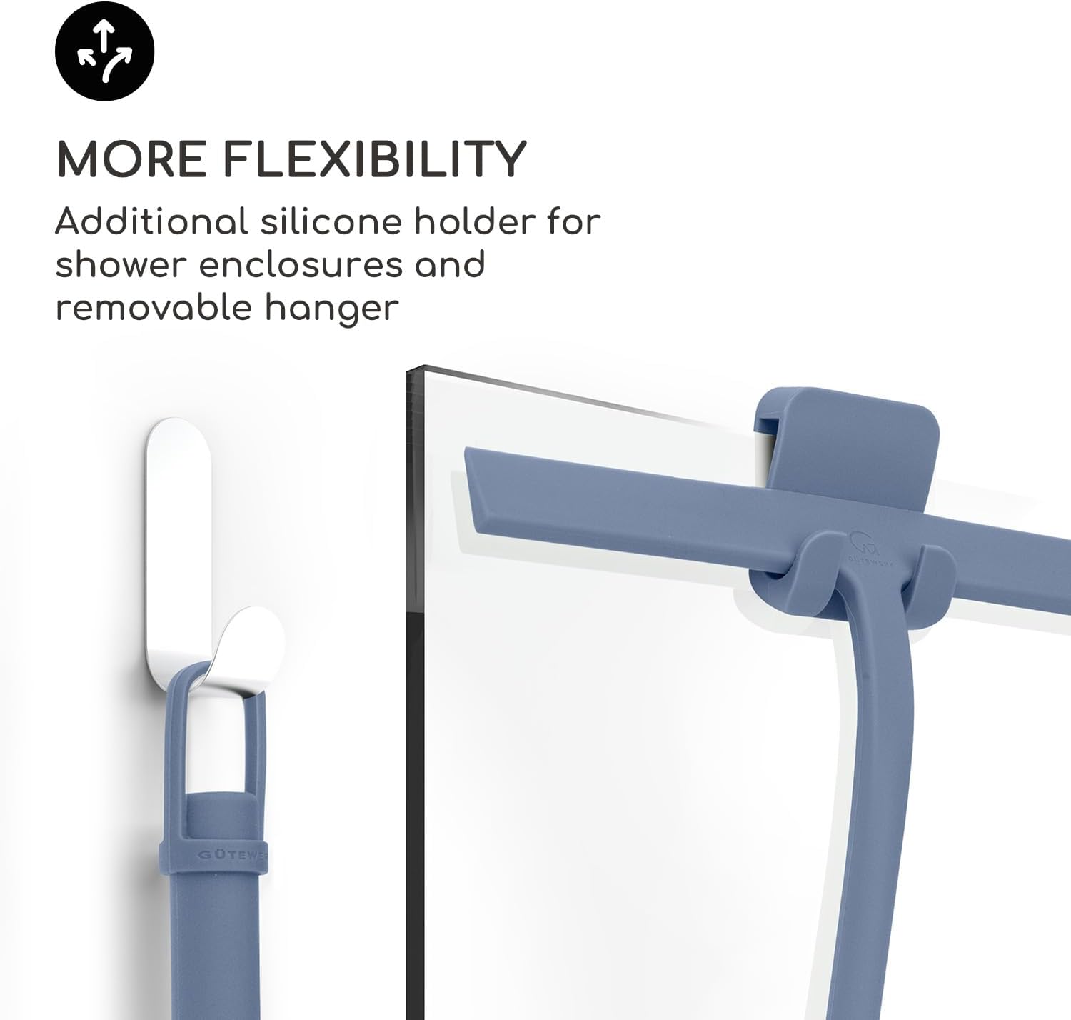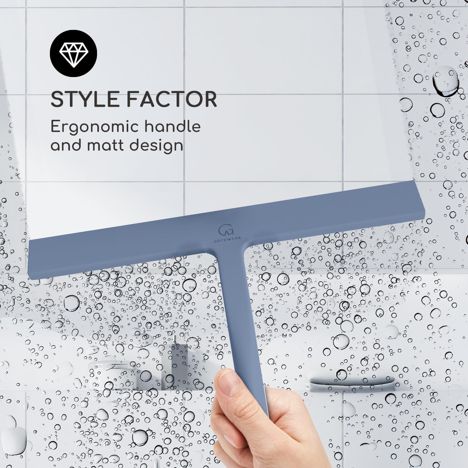 GÜTEWERK Shower Squeegee for Glass Doors, Silicone Window Squeegee, Bathroom and Glass Cleaning - Blue - 11 Inch