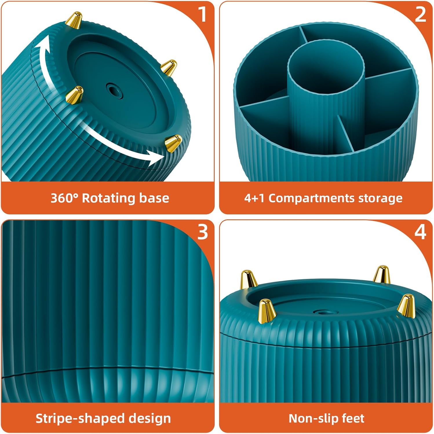- 【Smart 360 Degree Revolving Design】: This desktop organizer can be turned up to 360-degree rotation to the left and right. This storage caddy allows you to keep all of your small items within reach while staying out of your way. You can always get what you want quickly and easily. The product can be bilaterally and smoothly rotated, just turn as you please