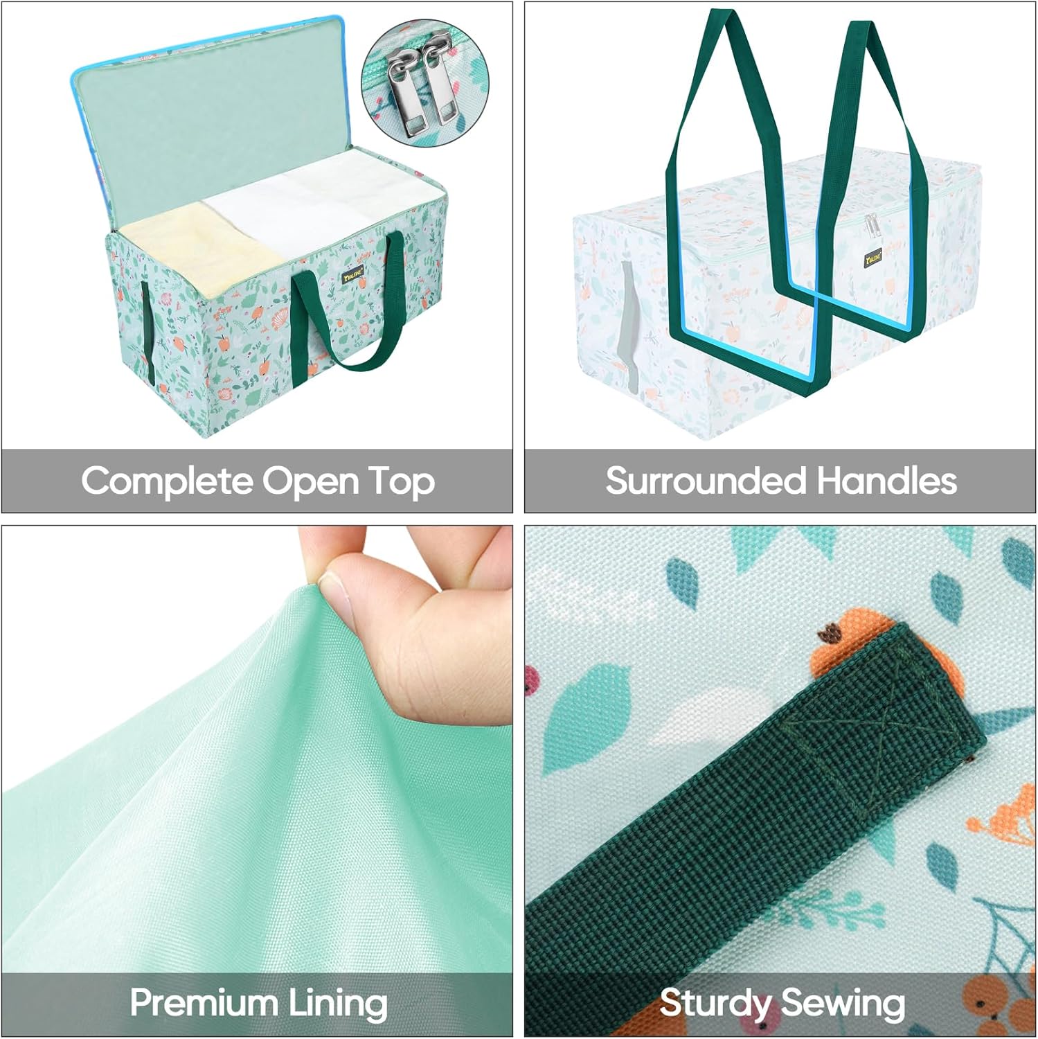 BALEINE Extra Large Storage Tote with Zippers & Carrying Handles, Heavy-Duty Oxford Fabric Moving Bags for Laundry, Space Saving, Storage, Spring Stroll