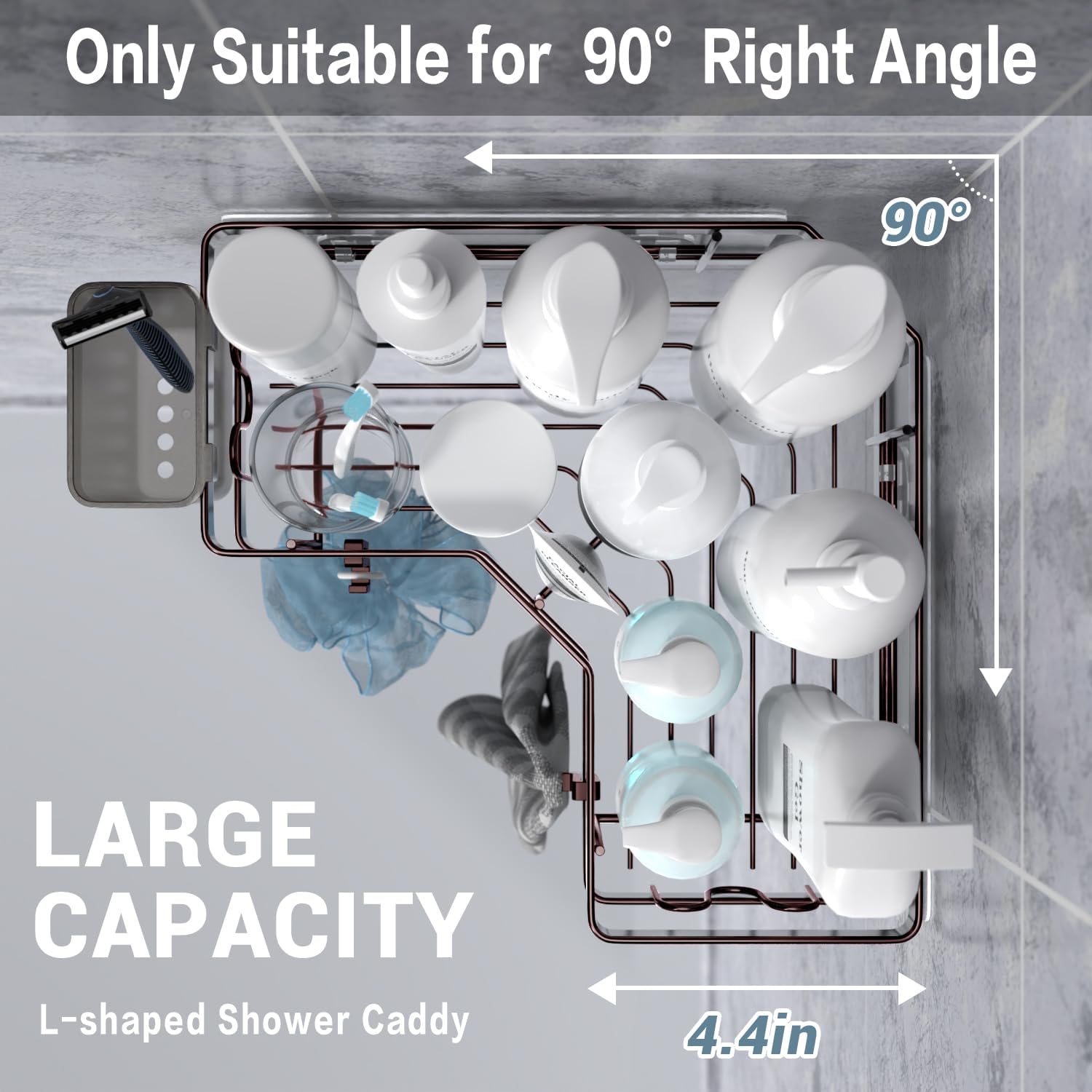 - [Space-Saving & Stylish Design]: Upgrade L-Shaped corner shower caddy is designed for making great use of corner space. Great shower organizer can organize most toiletries in the bathroom and help to create a clean finished look in your shower. Extremely handy for shower organizing.