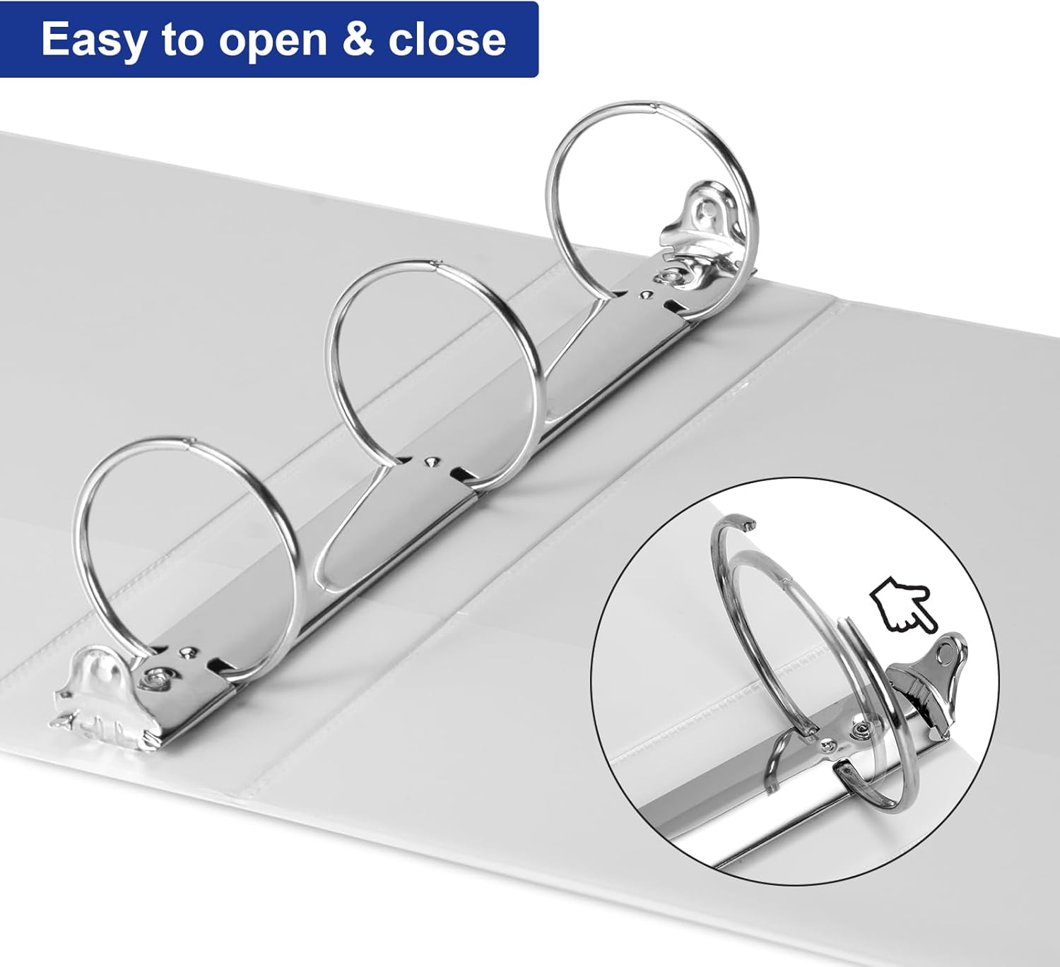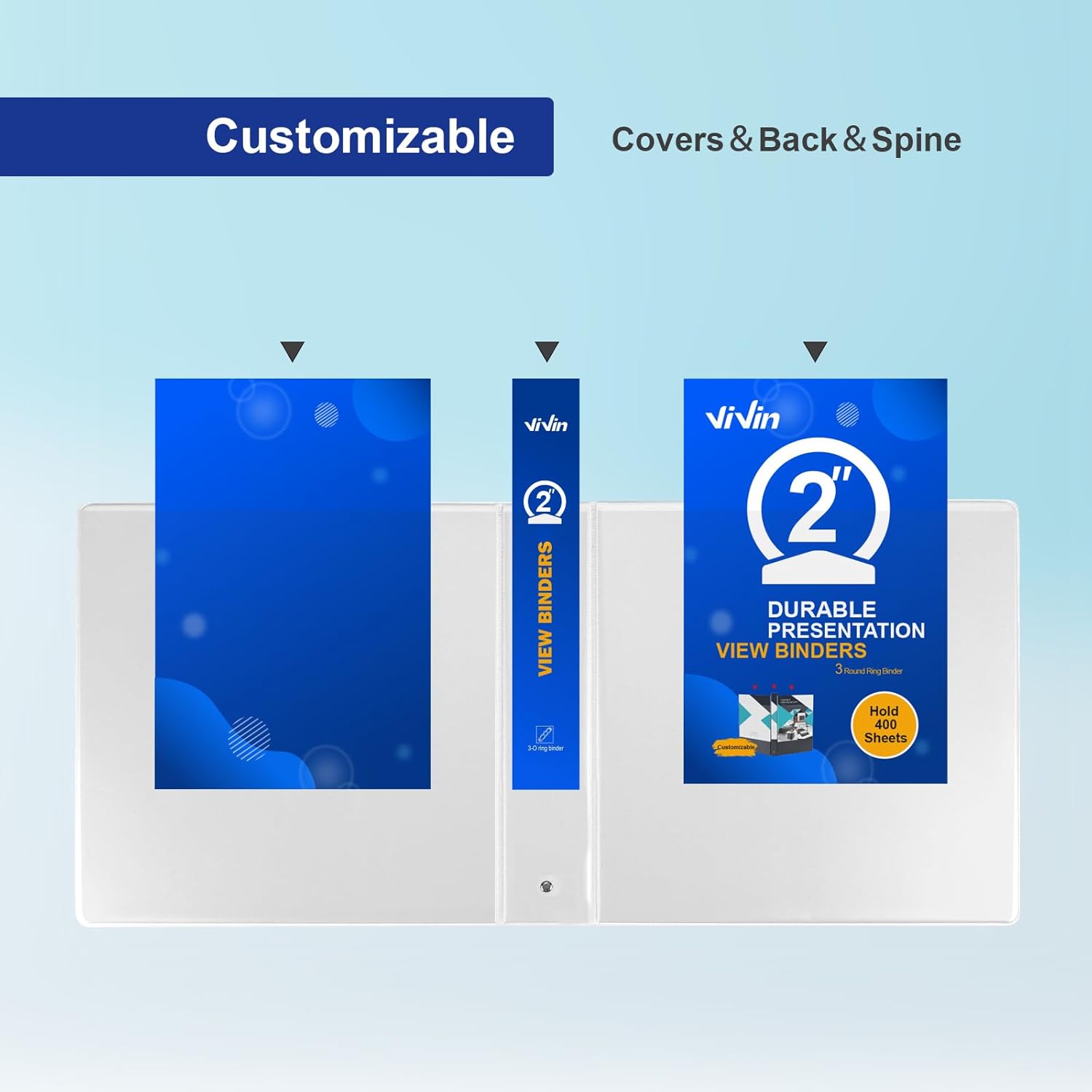 3 Ring Binder 2 Inch, ViVin Sturdy 2"-Round Ring Binder with 2 Interior Pockets, Clear View Cover, PVC-Free, Fits 400 Sheets of 8.5'' x 11'' Paper, Office Home School (6 Pack, White)