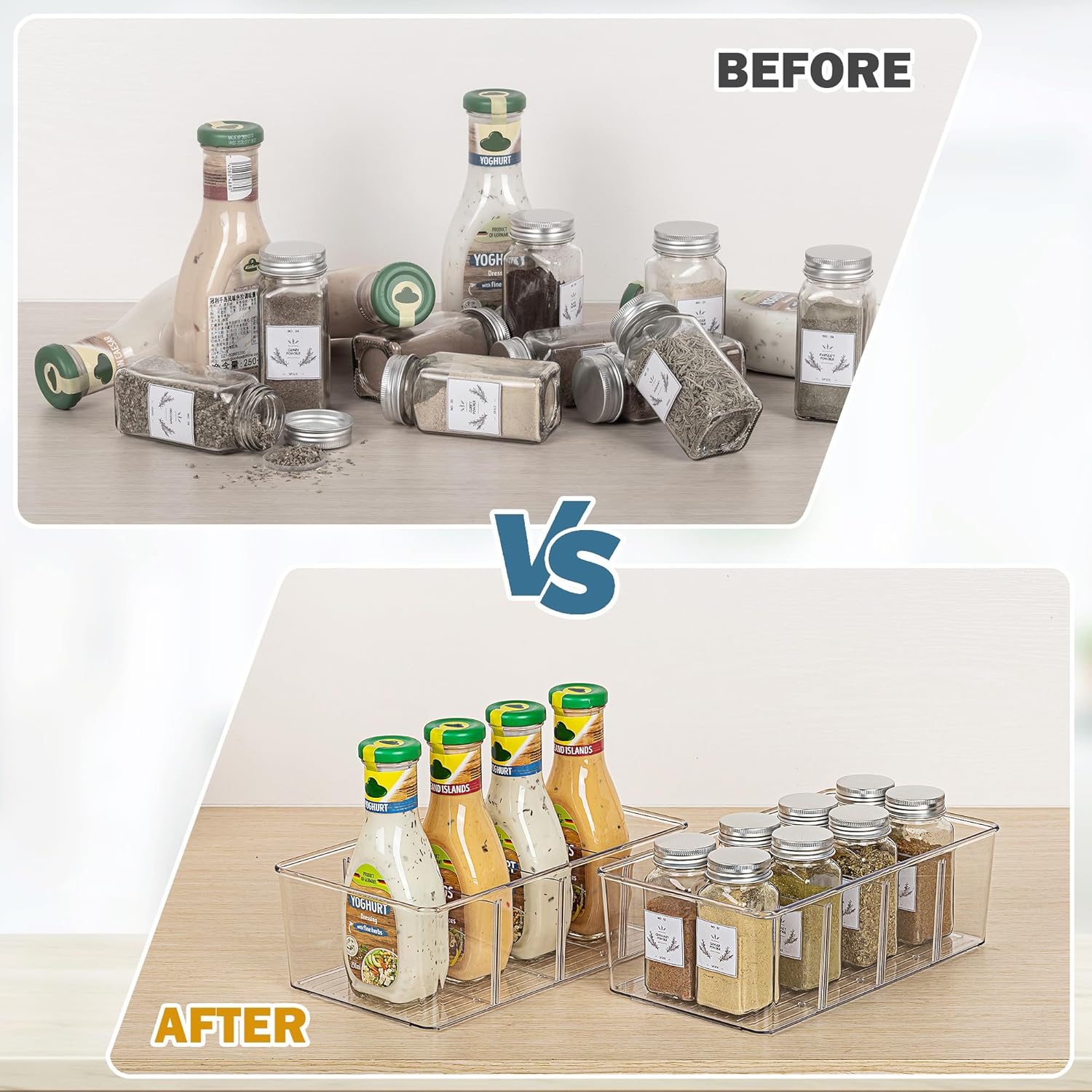 - Removable Dividers — There are 3 removable dividers in each food storage organizer bin, making it easy to separate and organize your items, you can quickly see and grab what you need.