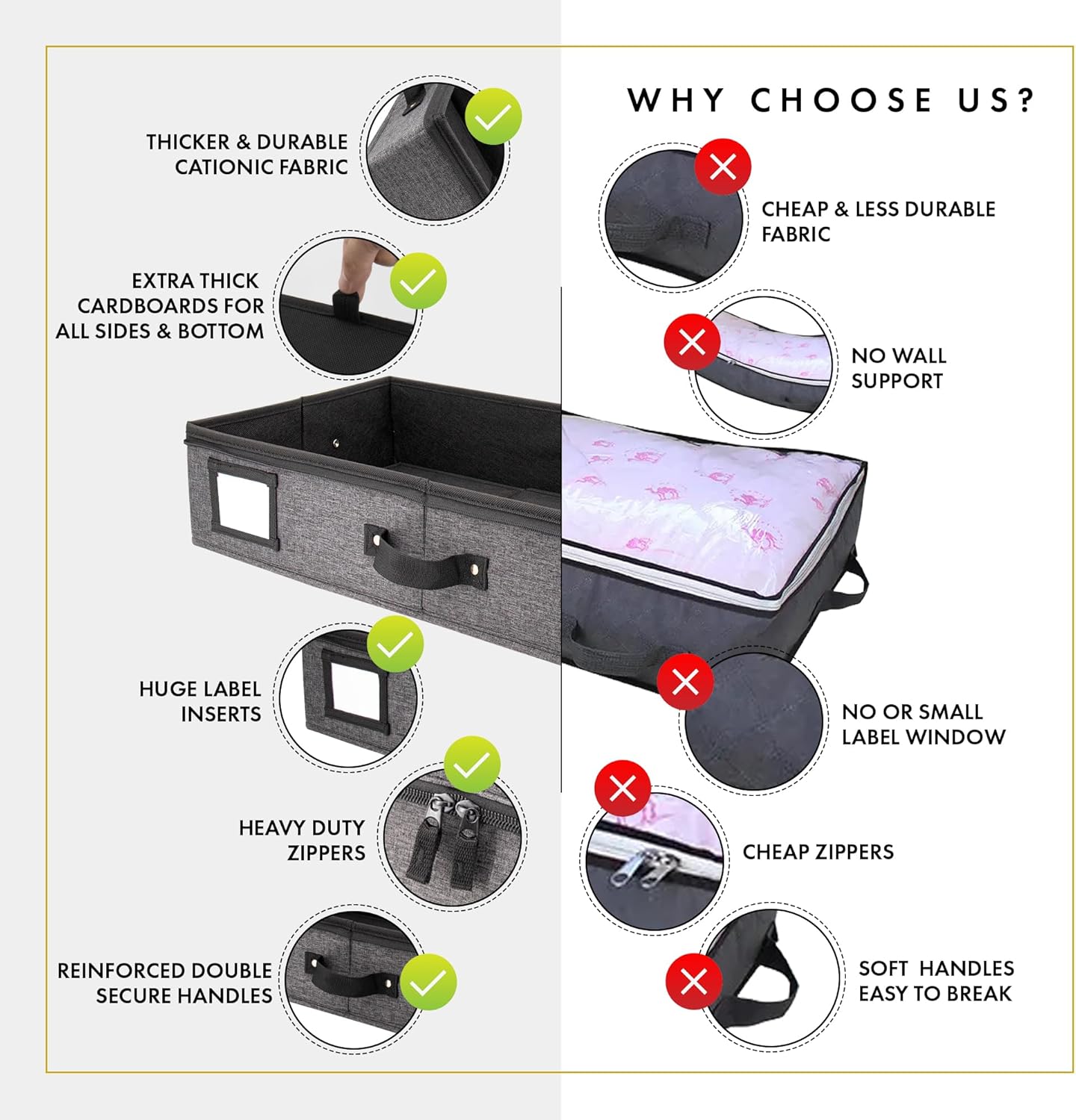 - ššššÆš² šš®šš² šš¢š©š©šš« šš„šØš¬š®š«š: Committed to safety and organization, our under bed flat storage boxes are precisely tailored. The zipper of our storage containers for under the bed ensures that the items inside are protected from dust and other elements that can cause damage. Our under bed storage with lid are pusposely designed with durability and strength making it ideal for flat clothing storage that require frequent opening and closing, or those that carry heavy loads.