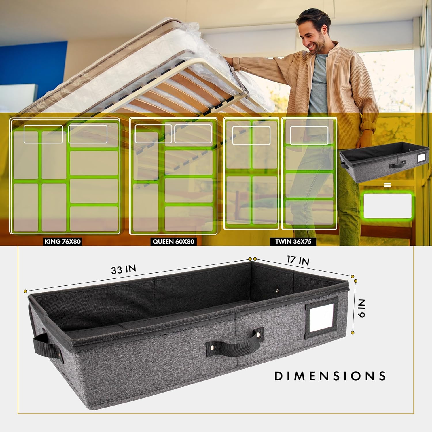 - šššš šššš¢šØš§š¢š šš„šØšš” ššššš«š¢šš„: Made from premium quality fabric, our 33x17x6" Under Bed Storage Containers With Lids are durable, sturdy, & carefully designed to hold large quantities of clothes, blankets, shoes, & various bed accessories. These under bed storage dorm drawers are designed to fit perfectly under your bed for efficient bed room organization and storage, making it an under bed organizer that will easily blend into your home's aesthetic style.